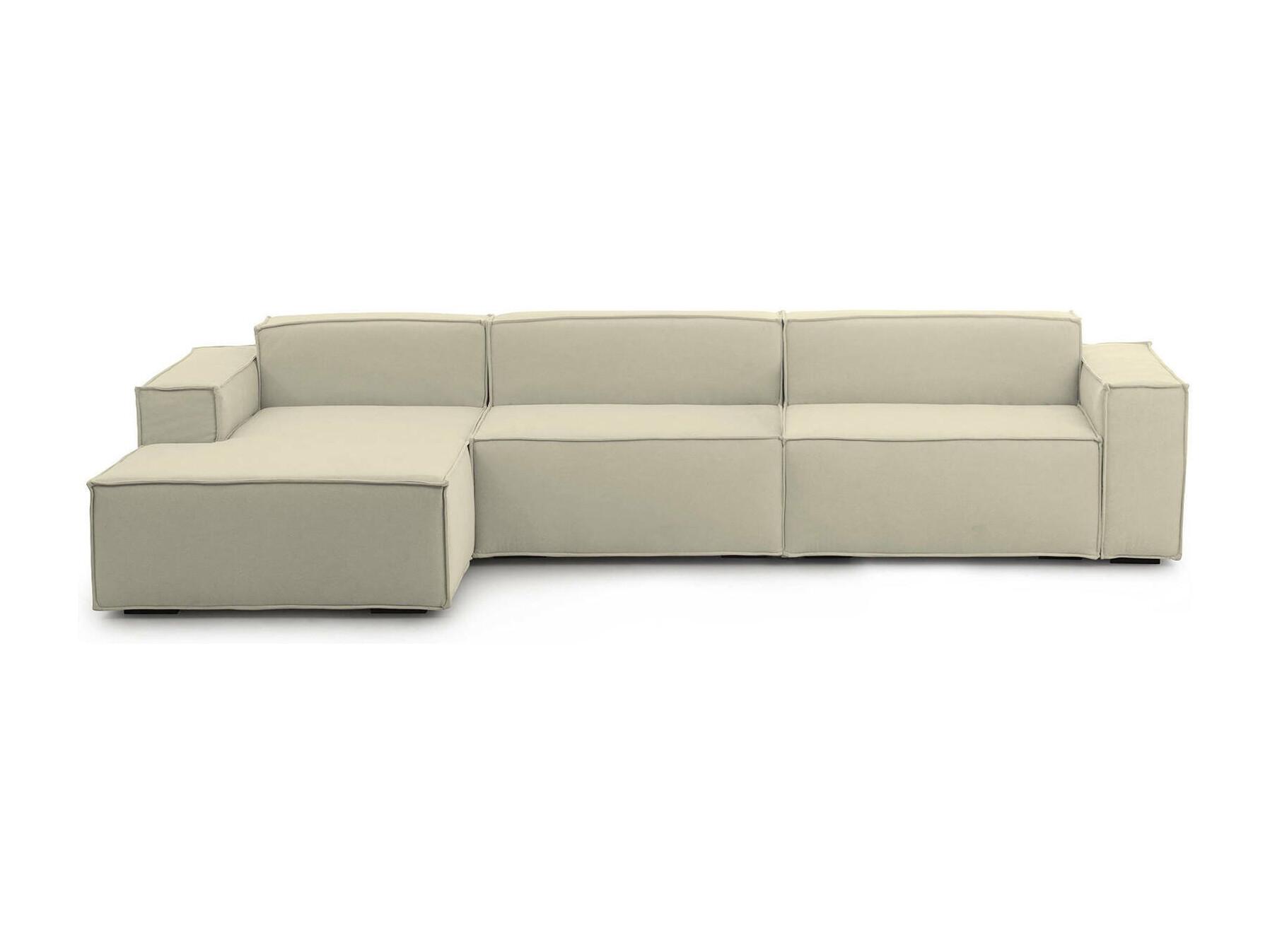Canapé fixe Licia, canapé modulable 4 places avec péninsule gauche, 100% Made in Italy, Canapé moderne en tissu, 340x170h70 cm, Beige
