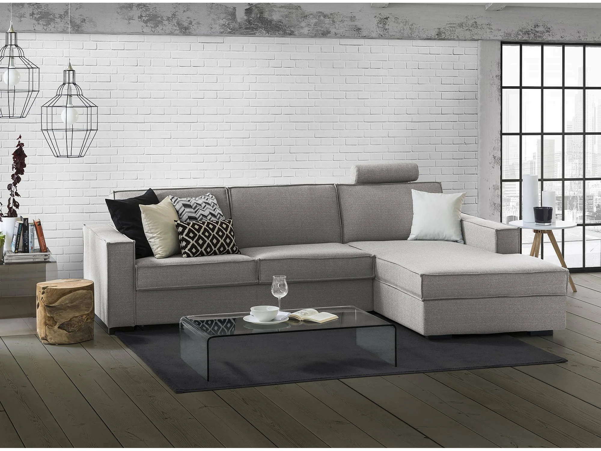 Canapé fixe Maia, Canapé d'angle, 100% Made in Italy, Canapé de salon avec péninsule conteneur droite, avec accoudoirs fins, 260x95h90 cm, Gris
