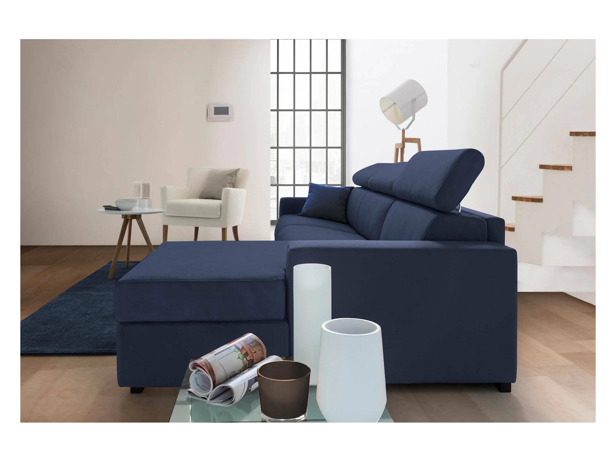 Canapé-lit Alceste, Canapé d'angle, 100% Made in Italy, Canapé à ouverture pivotante, avec péninsule de rangement droite, avec accoudoirs fins, 260x95h85 cm, Bleu