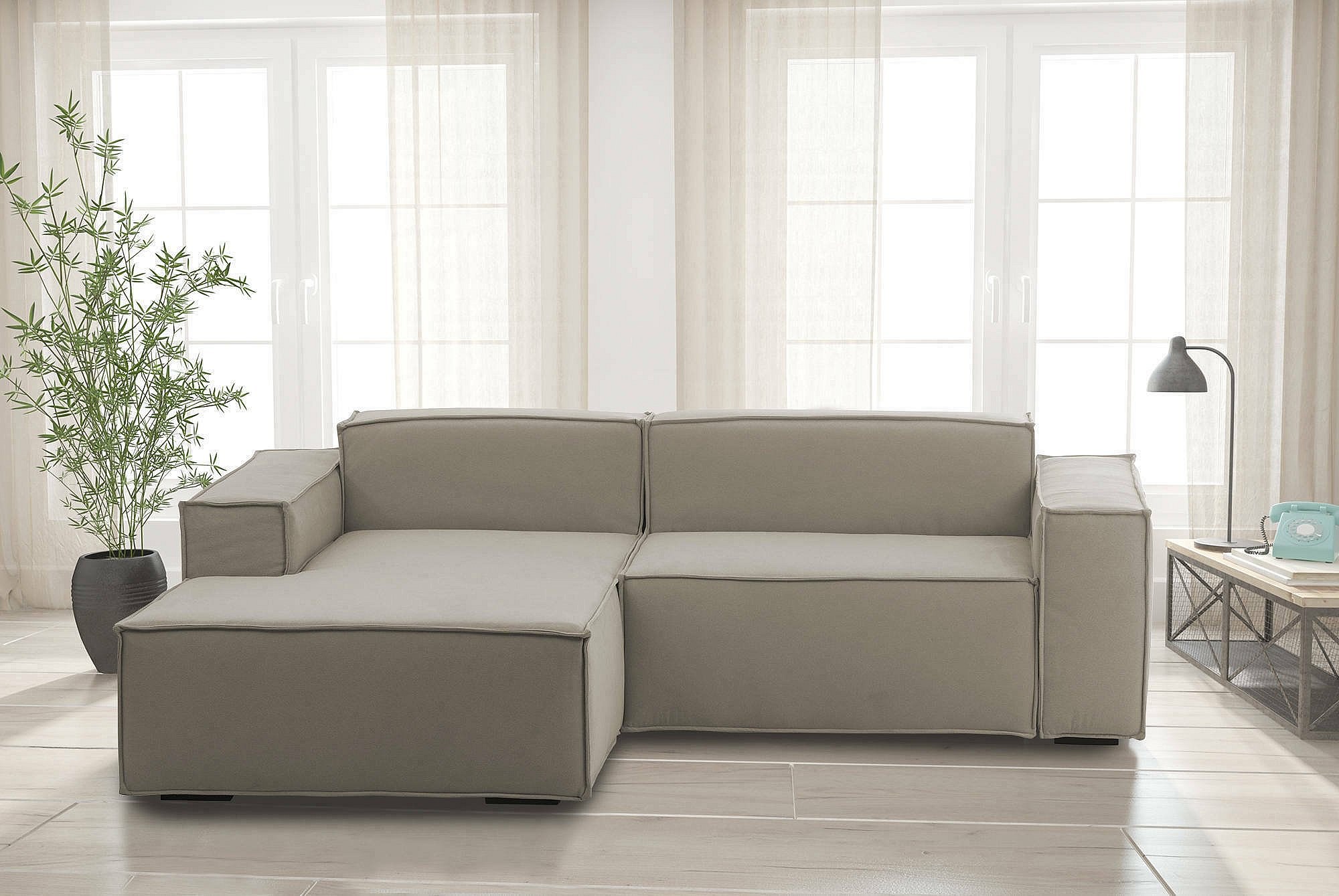 Canapé fixe Nadia, canapé modulable 2 places avec péninsule gauche, 100% Made in Italy, Canapé moderne en tissu, 220x170h70 cm, Taupe
