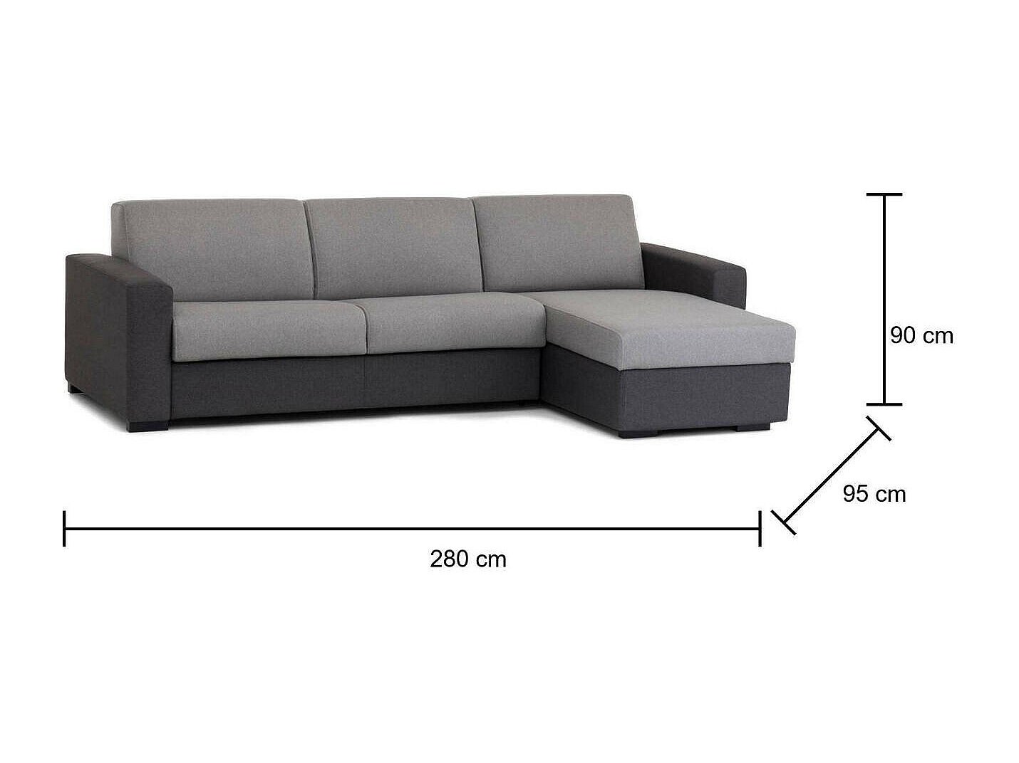 Sofá fijo con península Nicoletta, sofá península contenedor reversible, reposabrazos estándar, 100% Made in Italy, 280x95h90 cm, Gris y Antracita