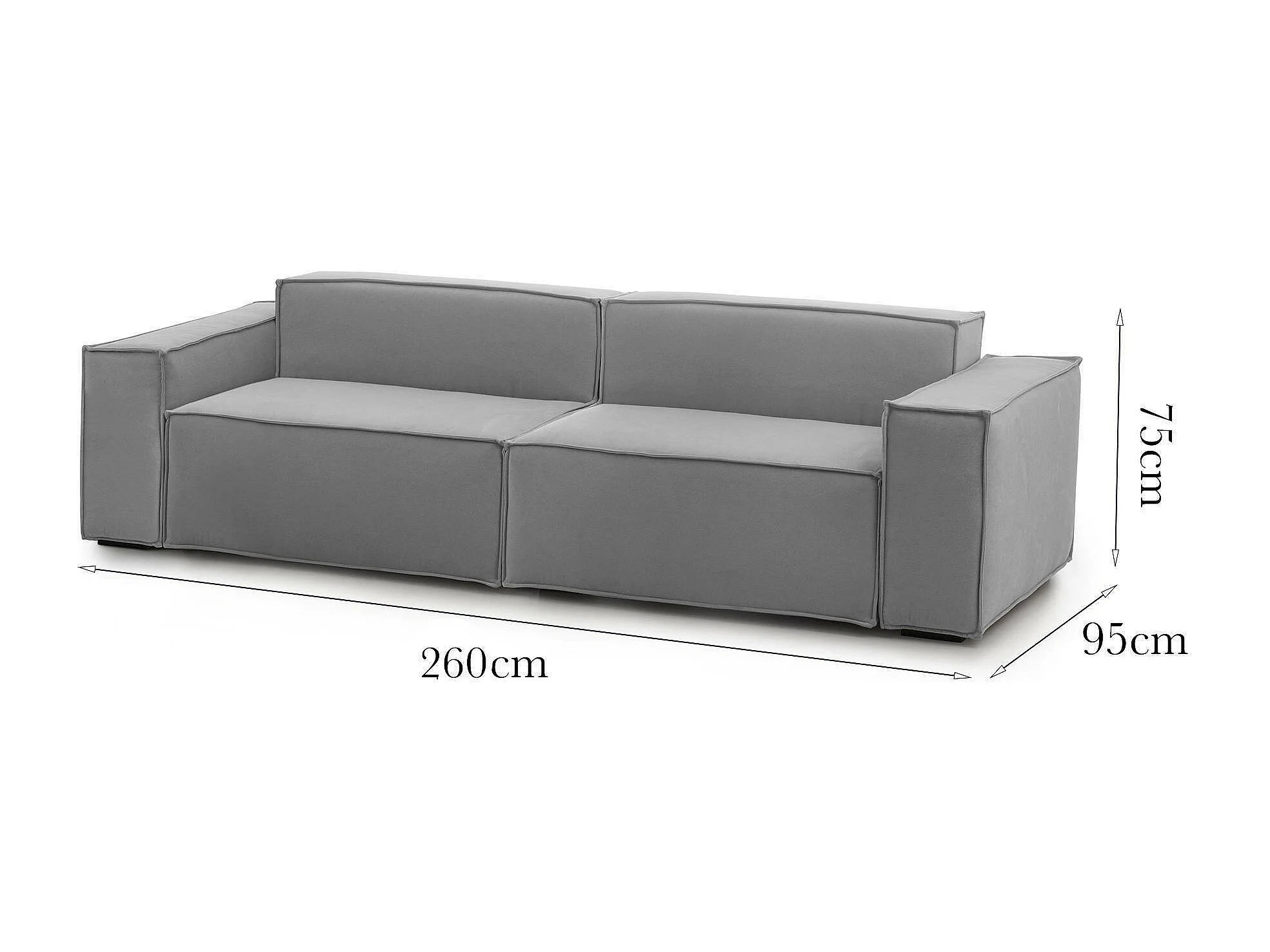 Canapé fixe Simona, canapé modulable linéaire 3 places, 100% Made in Italy, Canapé de salon moderne en tissu, 260x95h70 cm, Gris