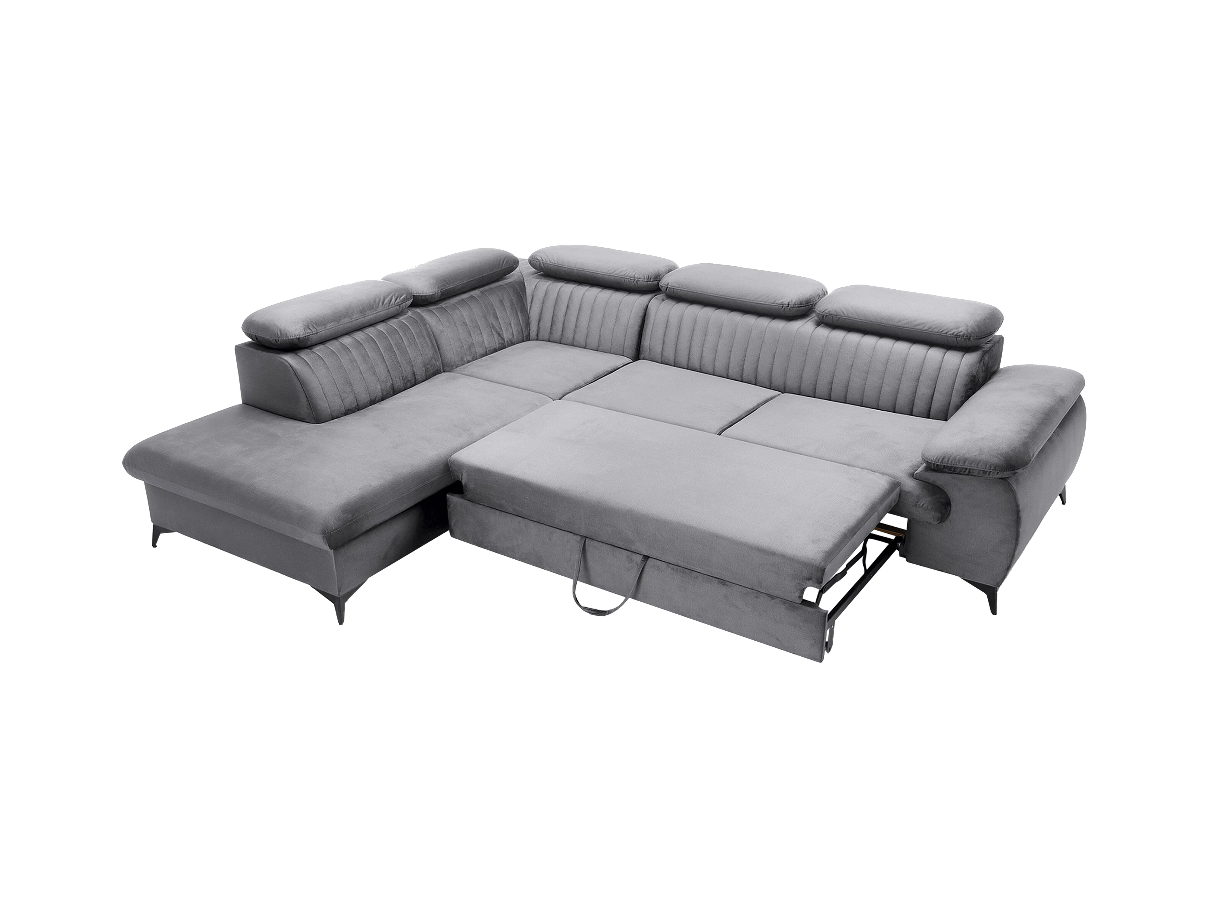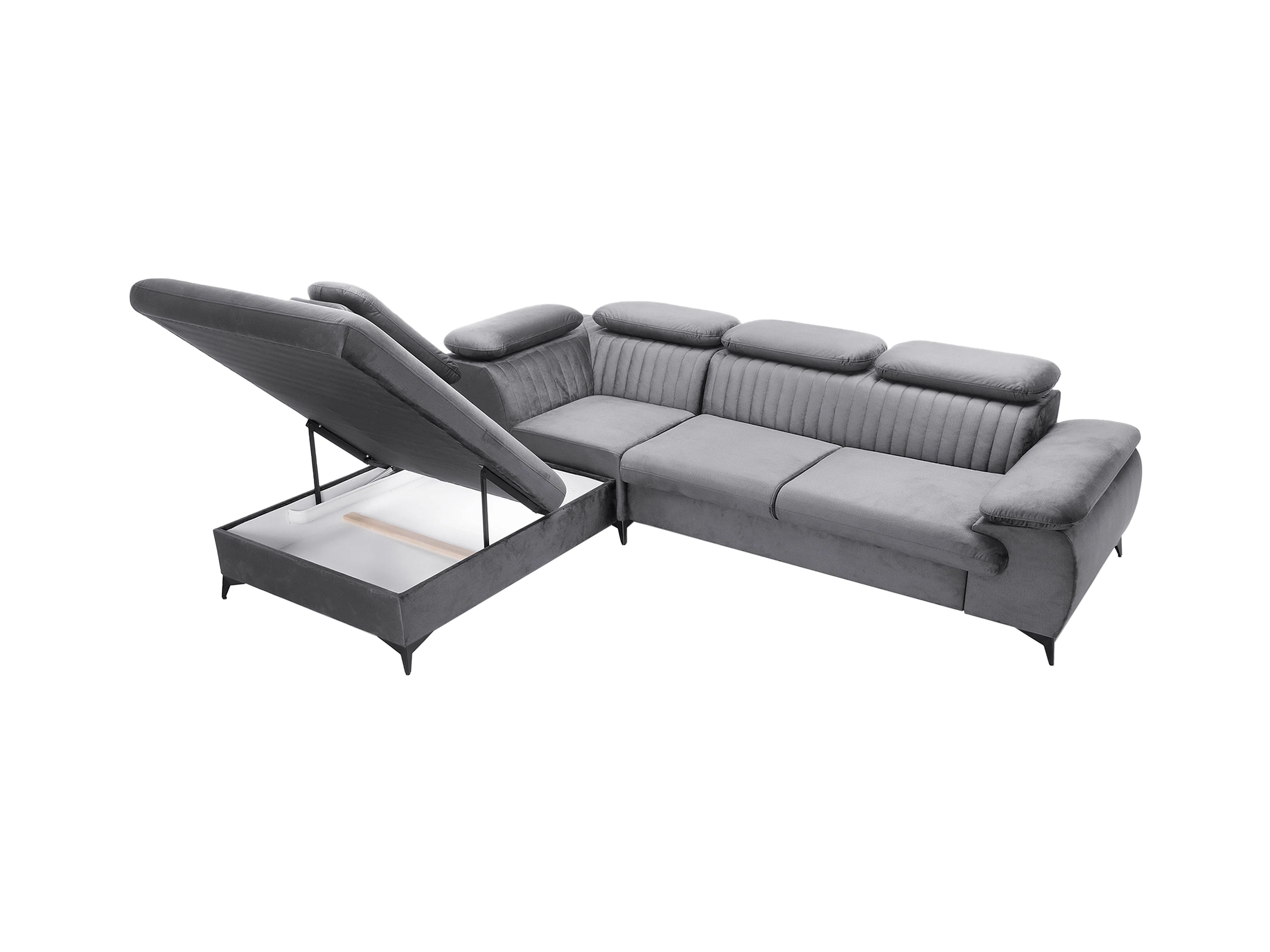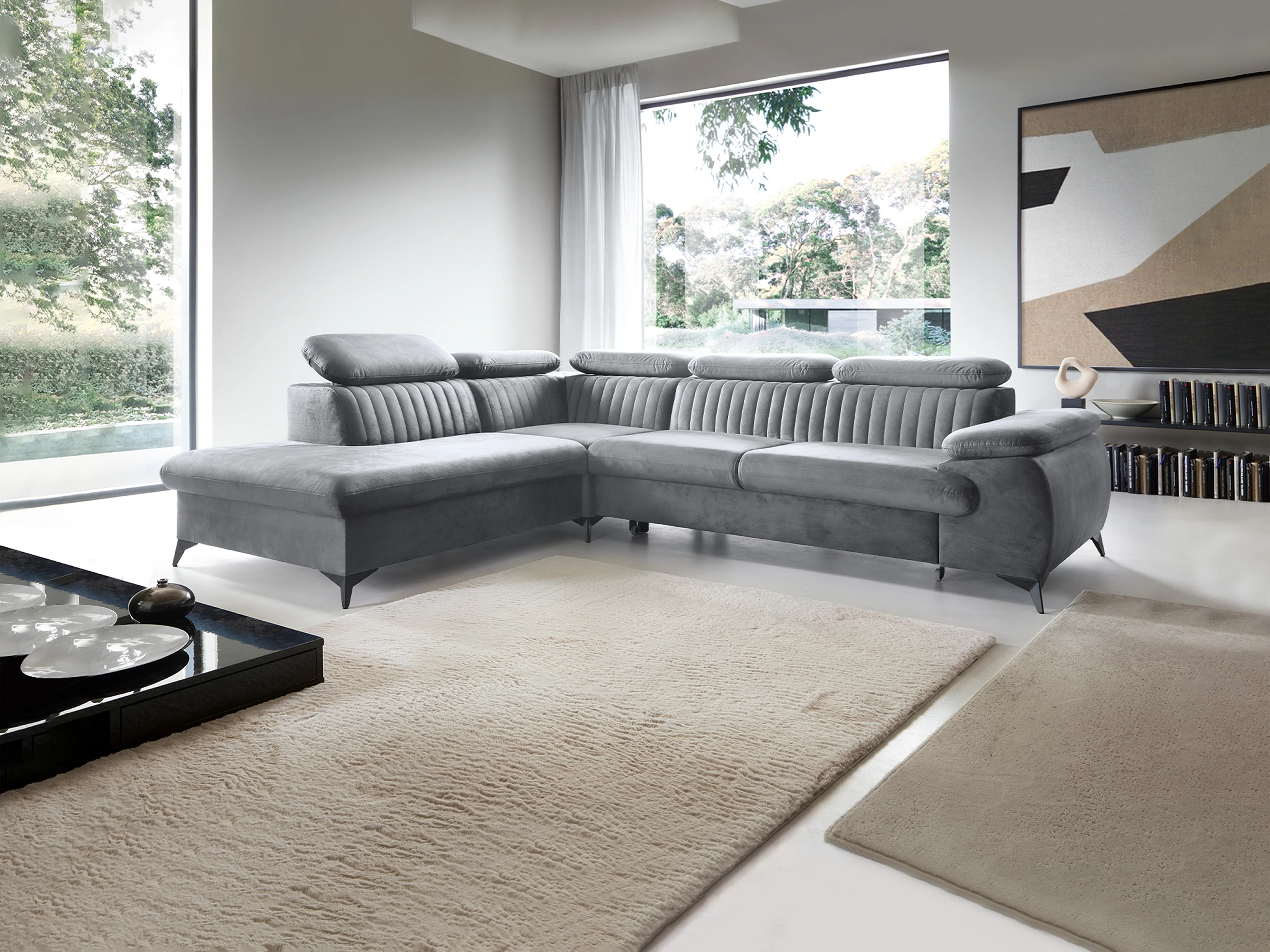 Canapé grand angle gauche convertible en velours gris clair SAMARA de Pascal Morabito