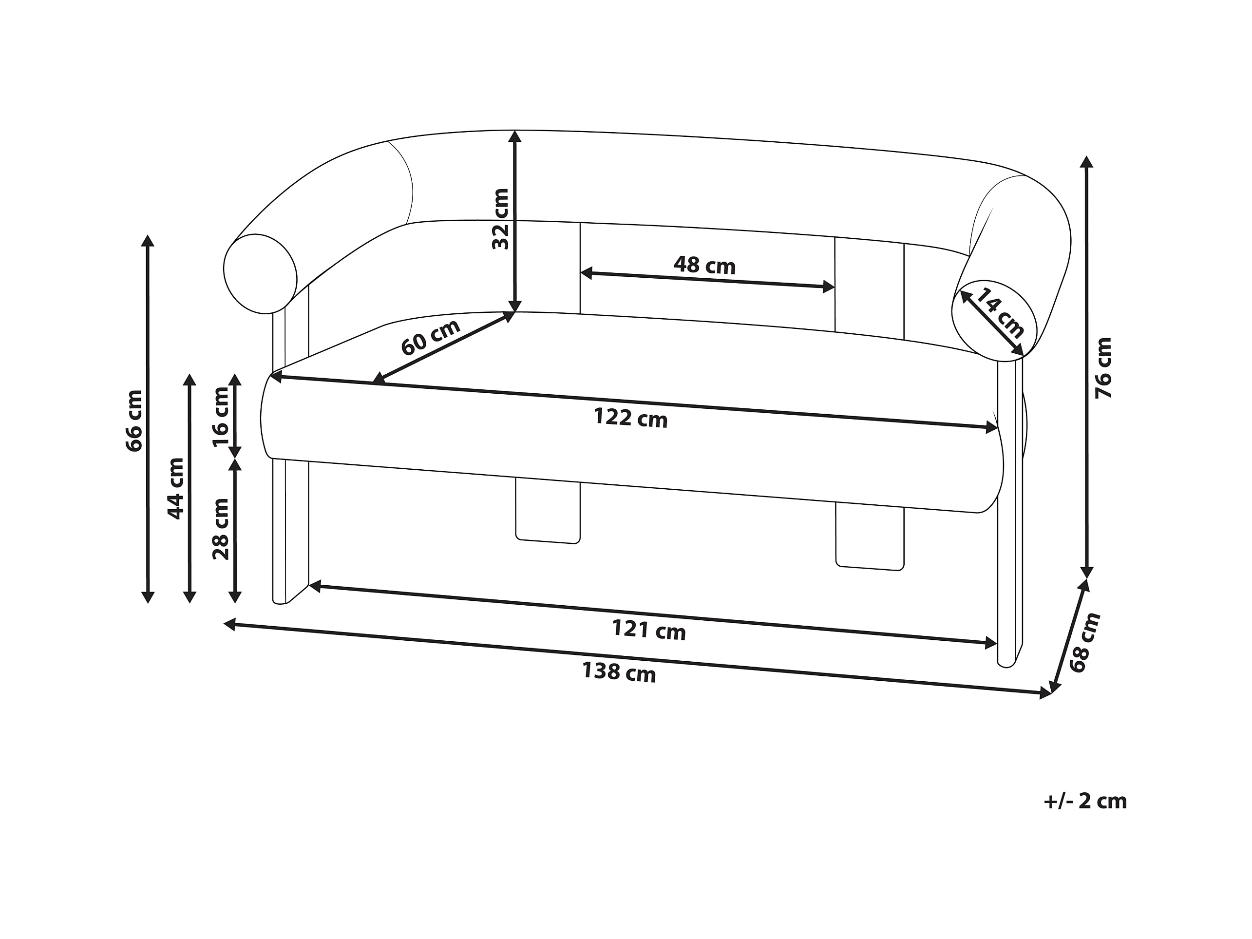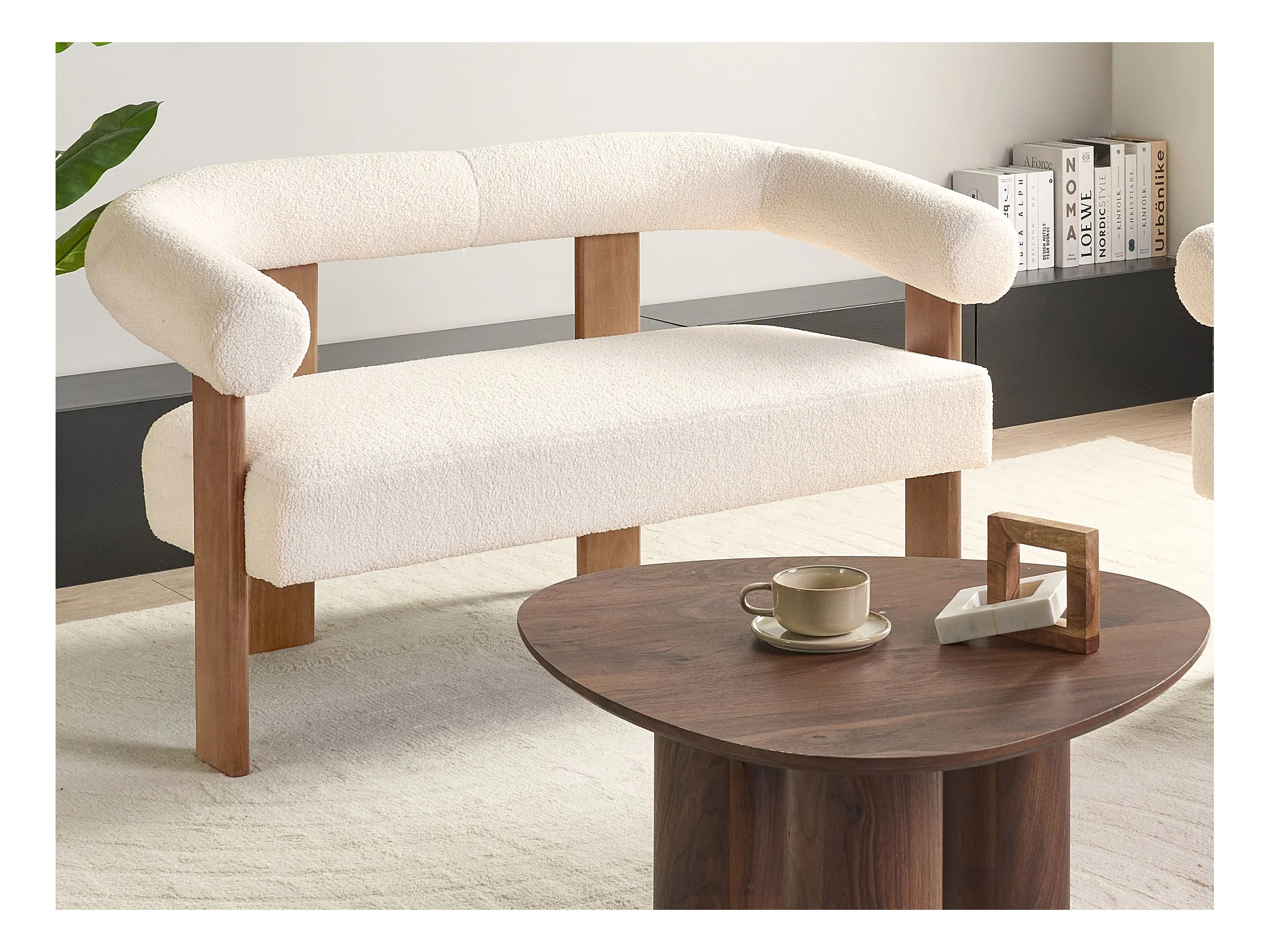 Canapé 2 places ILBRO Bouclé Blanc cassé/marron foncé