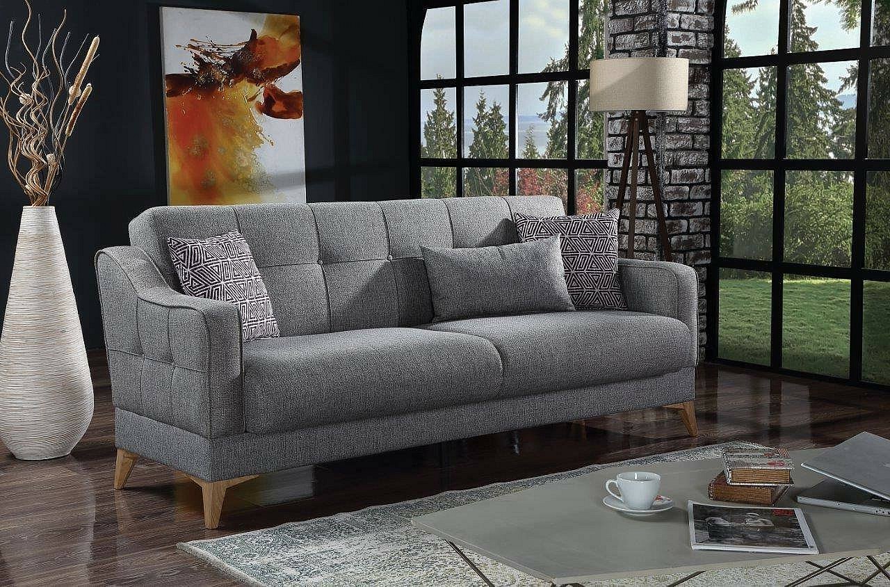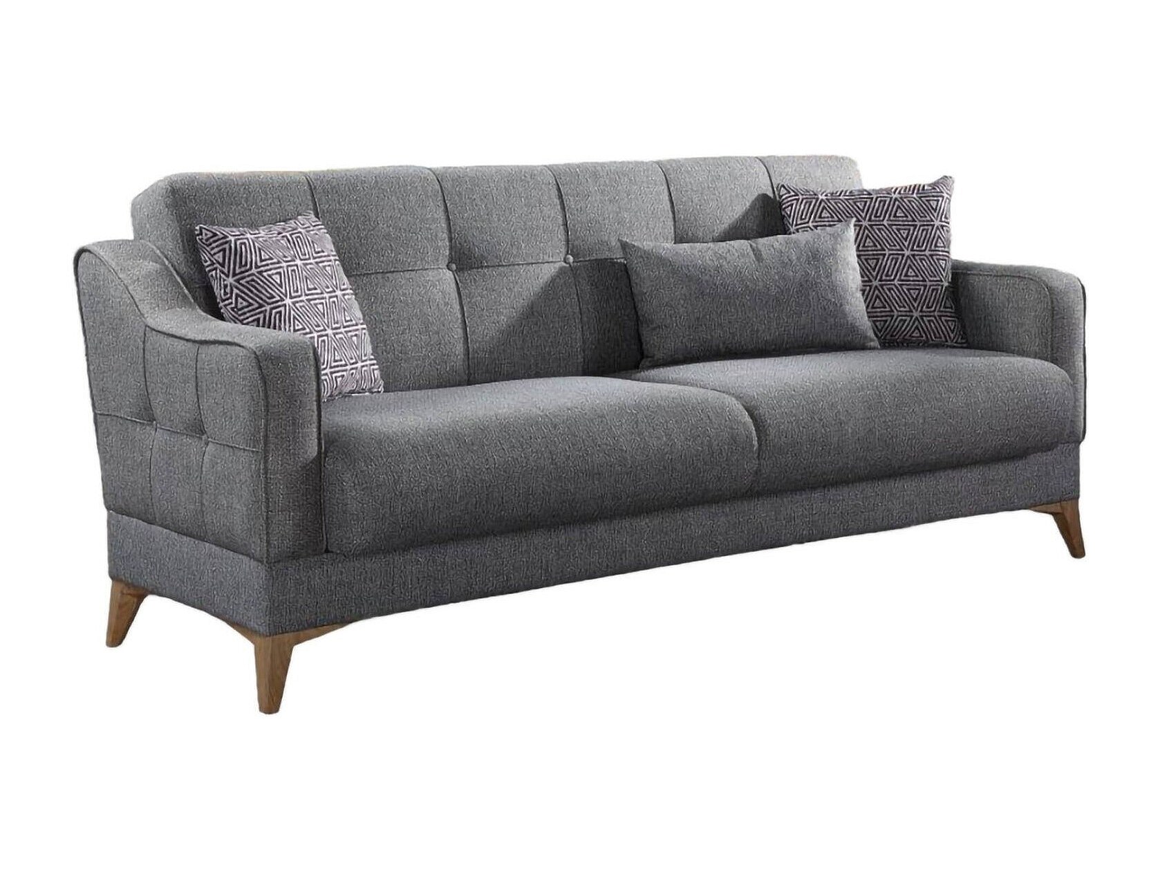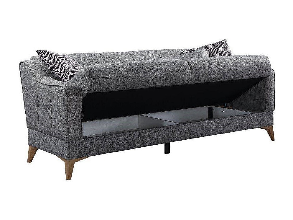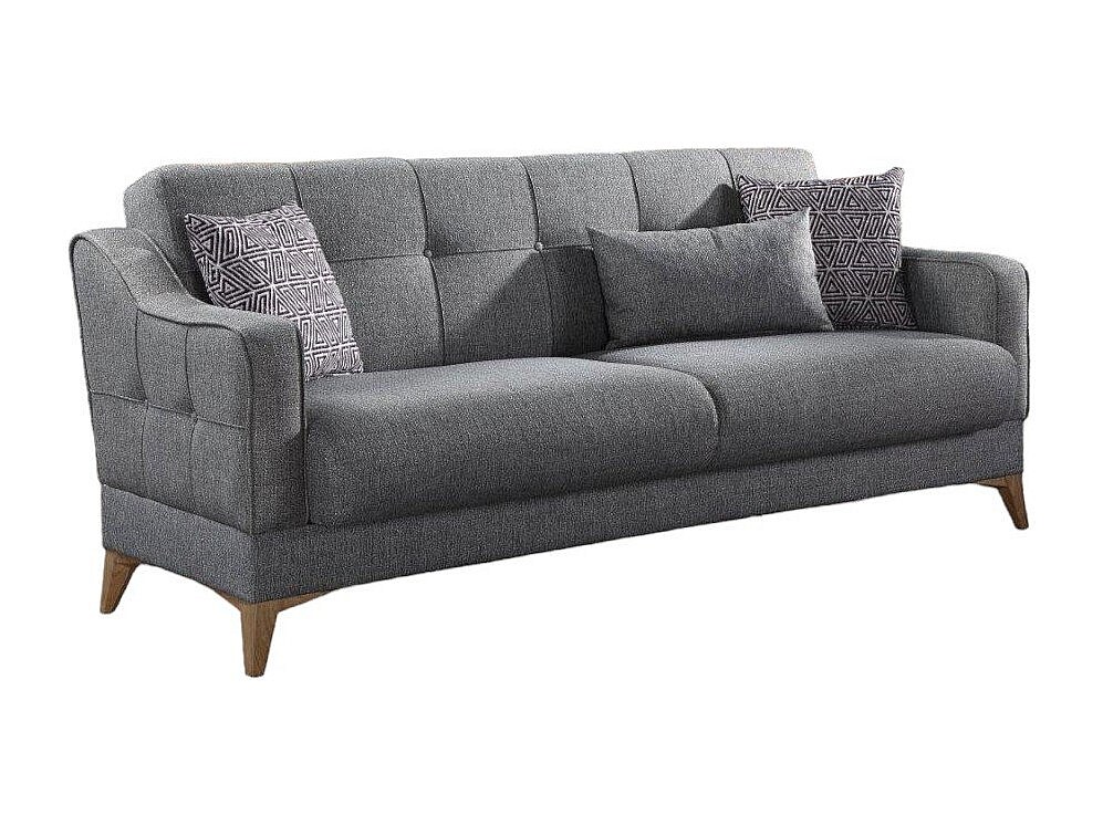 Canapé Juan, Canapé de rangement 3 places linéaire avec 3 coussins inclus, Canapé de salon en tissu rembourré avec ouverture clic-clac, 207x82xh92 cm, Gris