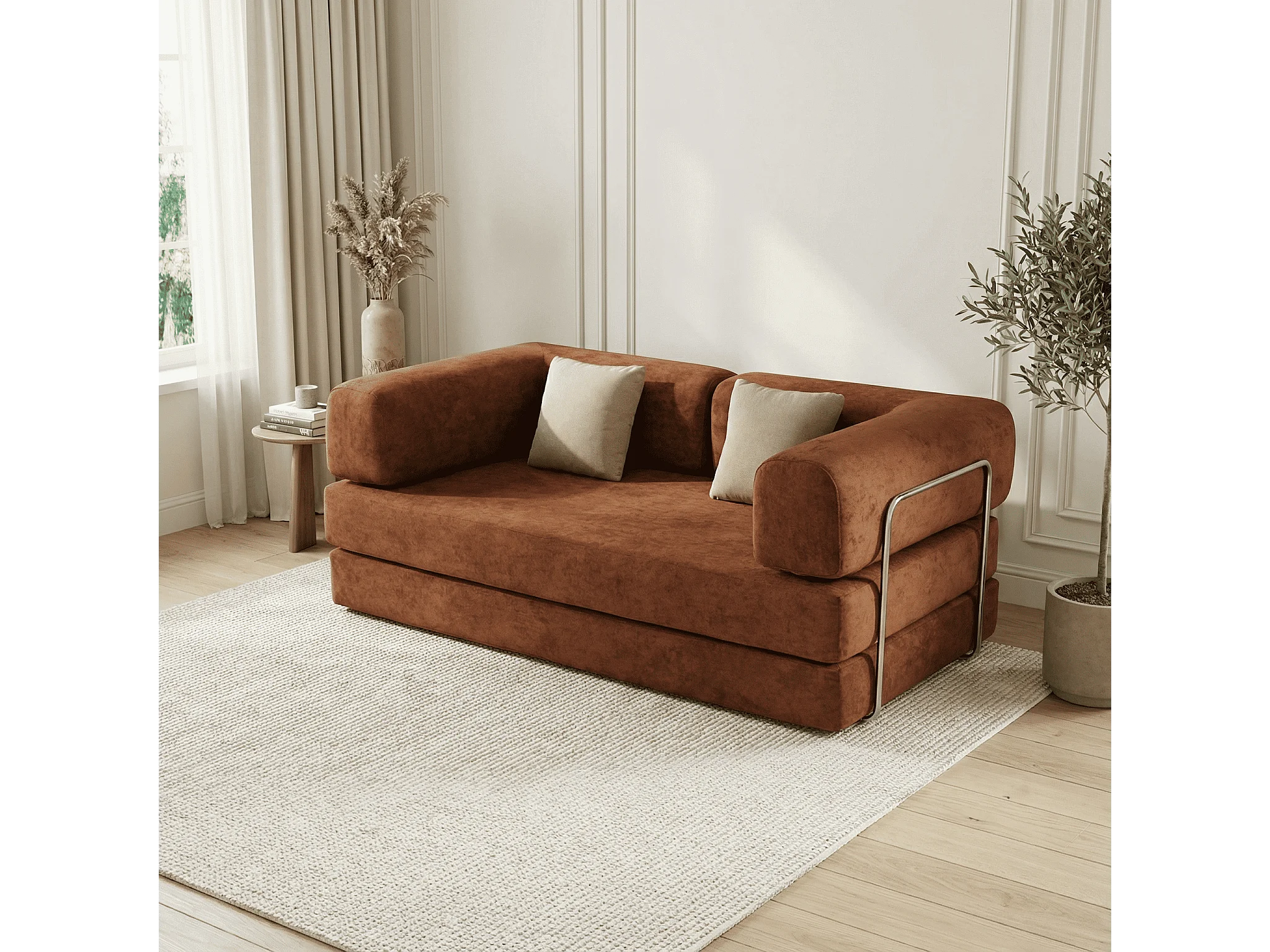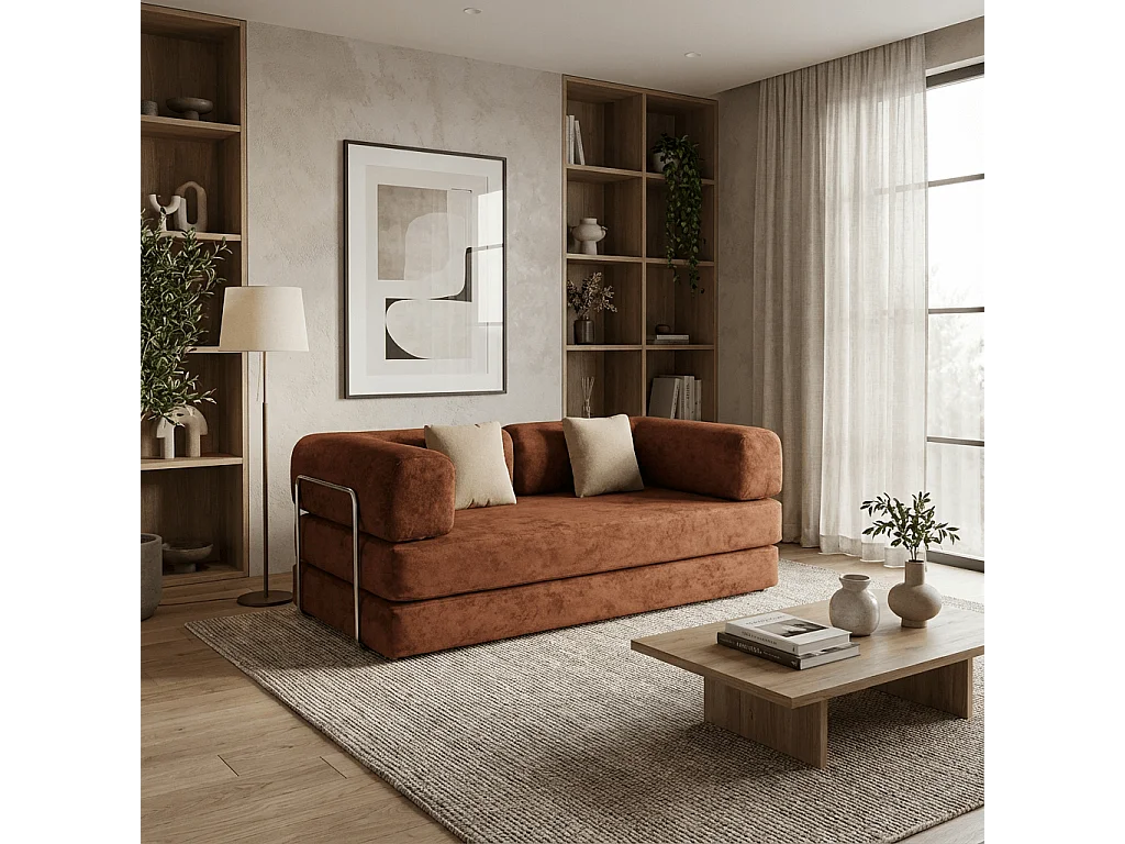 Canapé Kaia 2 places Convertible chocolat noir et beige