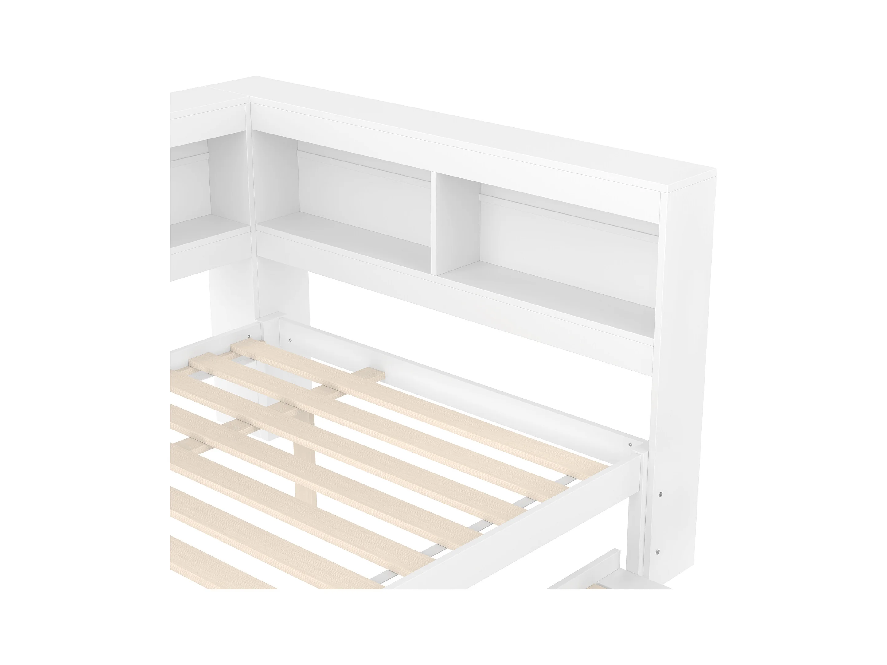 Lit gigogne 140 x 200 cm + 90 x 190 cm avec prise USB et bibliothèque - Bois massif - Blanc (sans matelas)