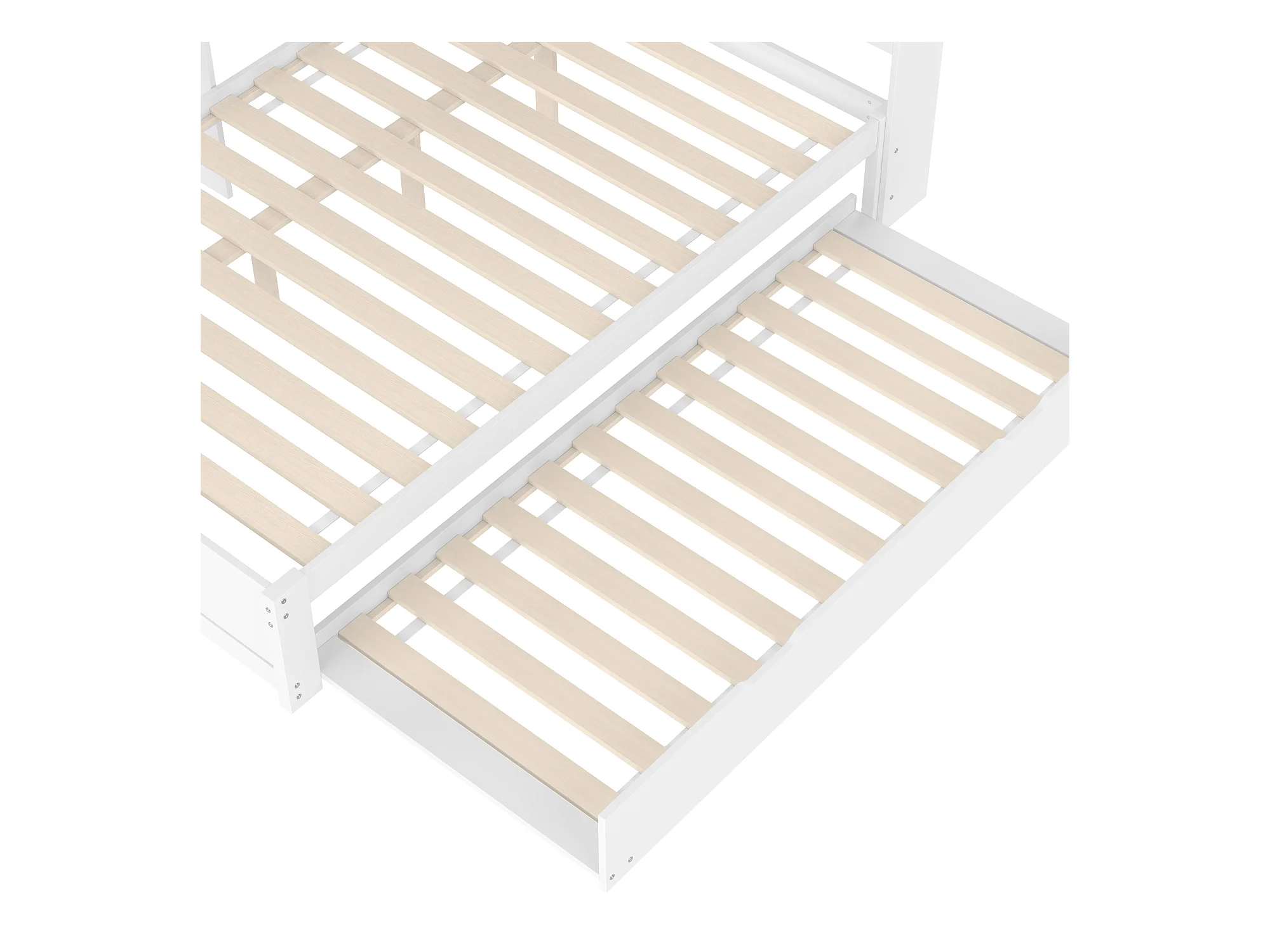 Lit banquette blanc et bois 140x200cm avec lit gigogne 90x190cm , multiples rangements et port de charge (sans matelas)