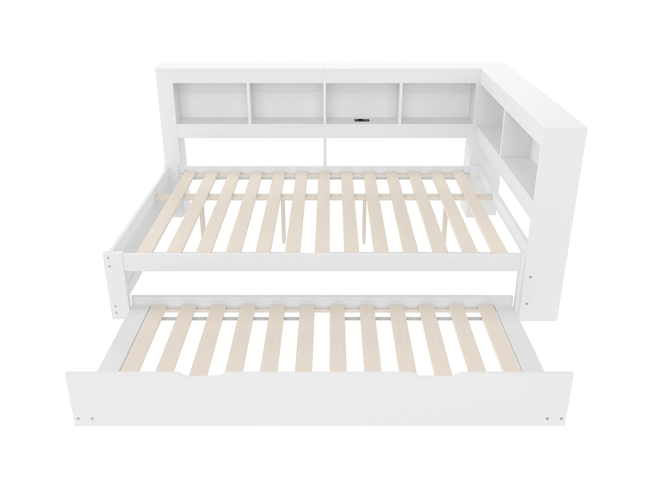 Lit banquette blanc 140x200cm avec lit gigogne 90x190cm, prise de courant et 2 ports USB, rangement (sans matelas)