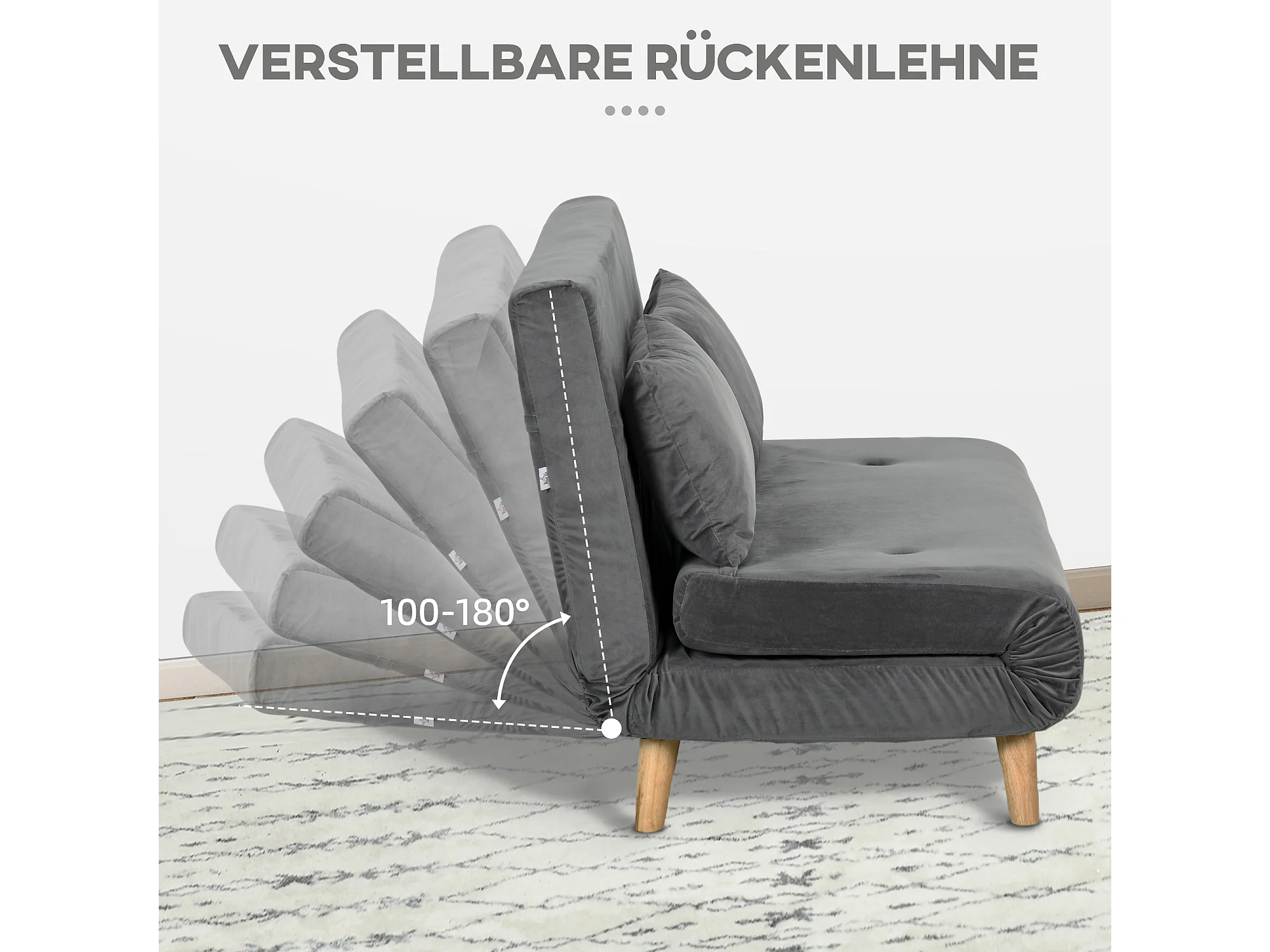 Canapé-lit 2 places, dossier inclinable, velours gris, structure acier, pieds caoutchouc (130x78x79cm)