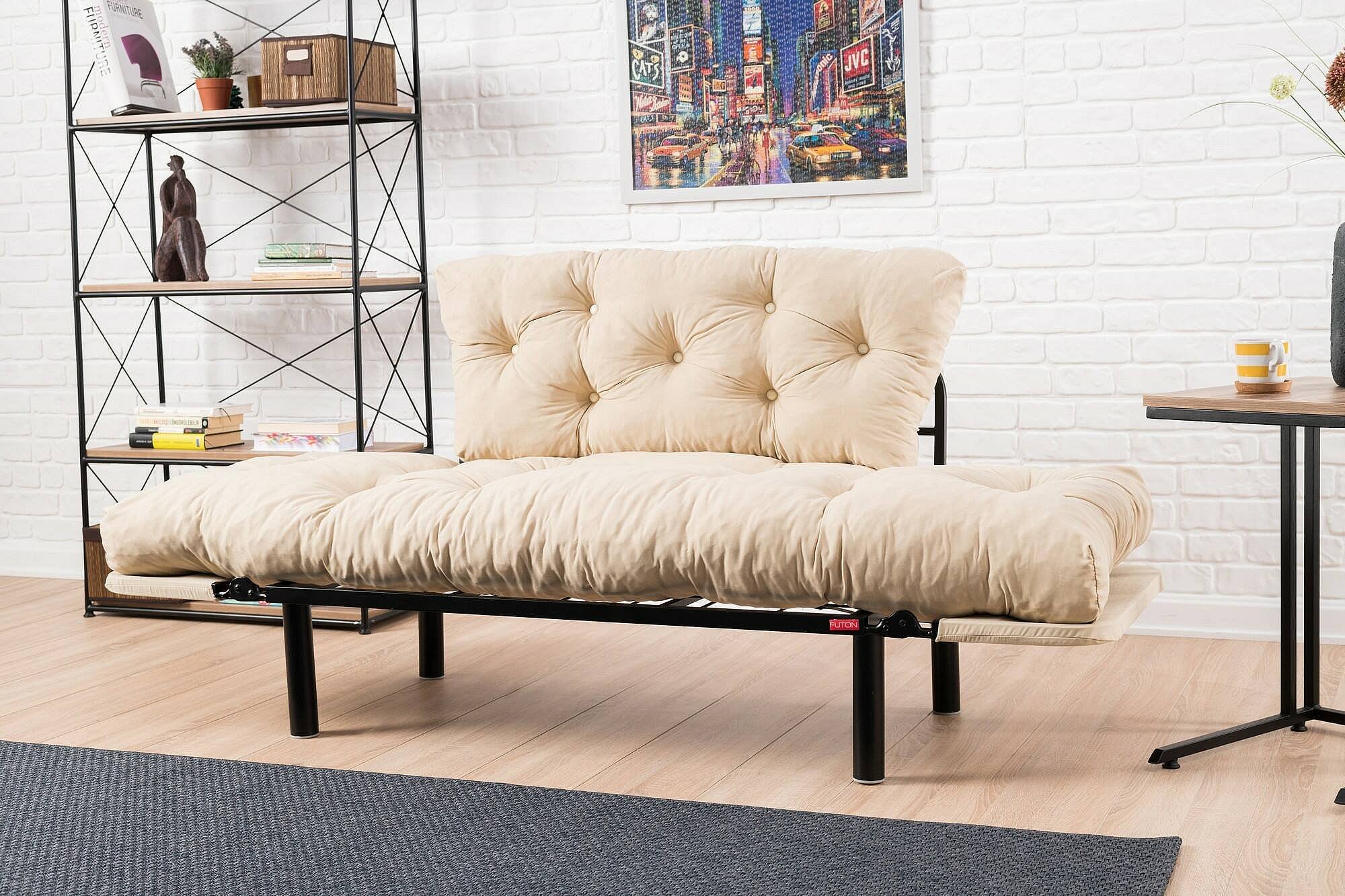 Canapé lit 2 places Dnicolapinott, Divan transformable, Canapé pour invités, Fauteuil lit conteneur, 120x75 h79 cm, Crème