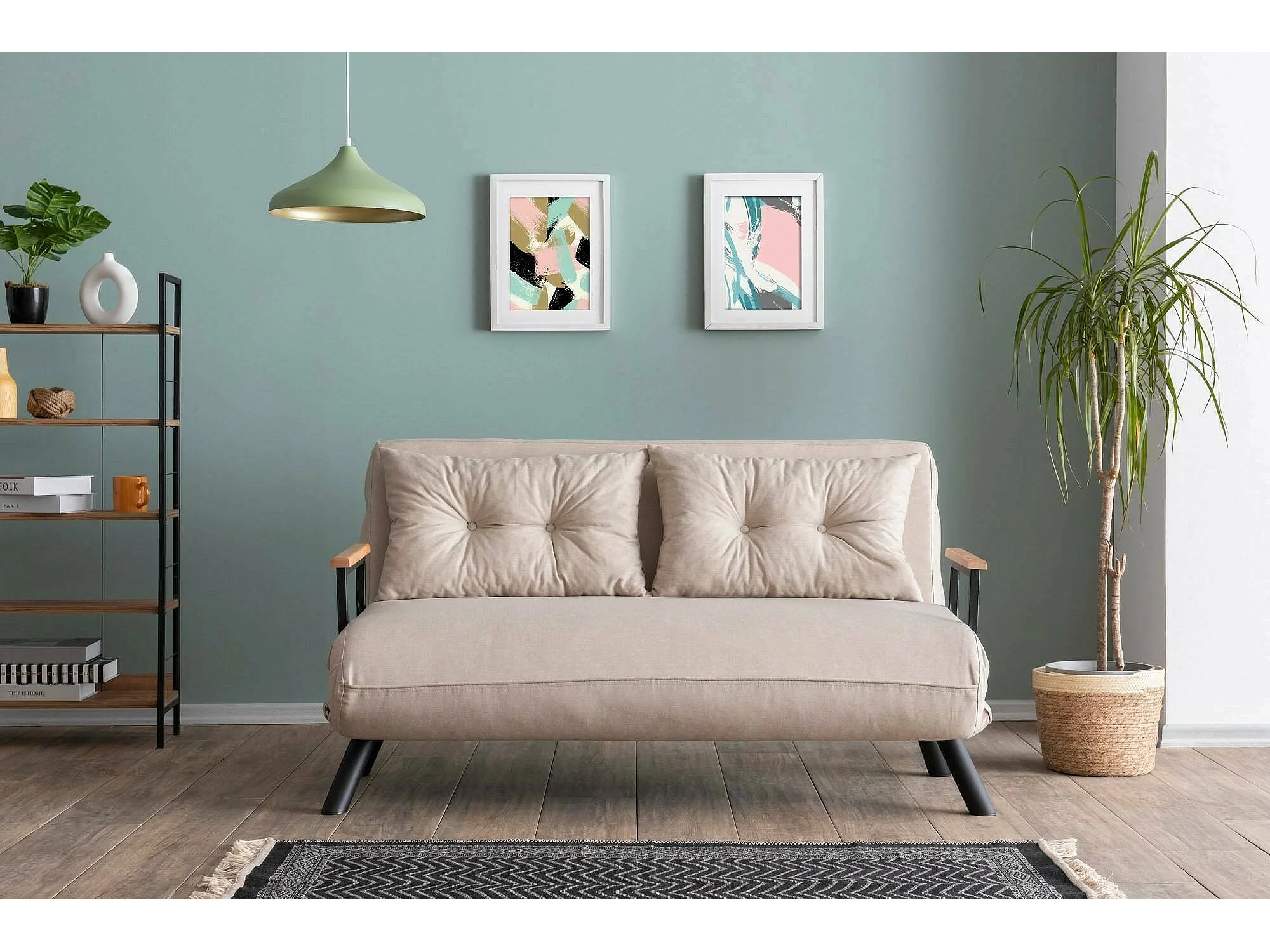 Canapé lit 2 places Dworle, Divan transformable, Canapé pour invités, Fauteuil lit conteneur, 133x78 h78 cm, Beige