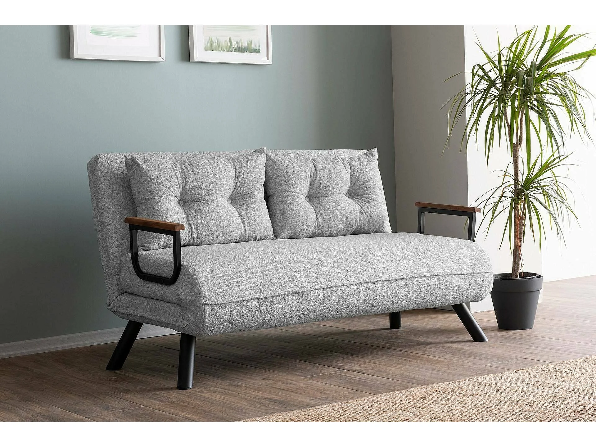 Canapé lit 2 places Dworle, Divan transformable, Canapé pour invités, Fauteuil lit conteneur, 133x78 h78 cm, Gris clair