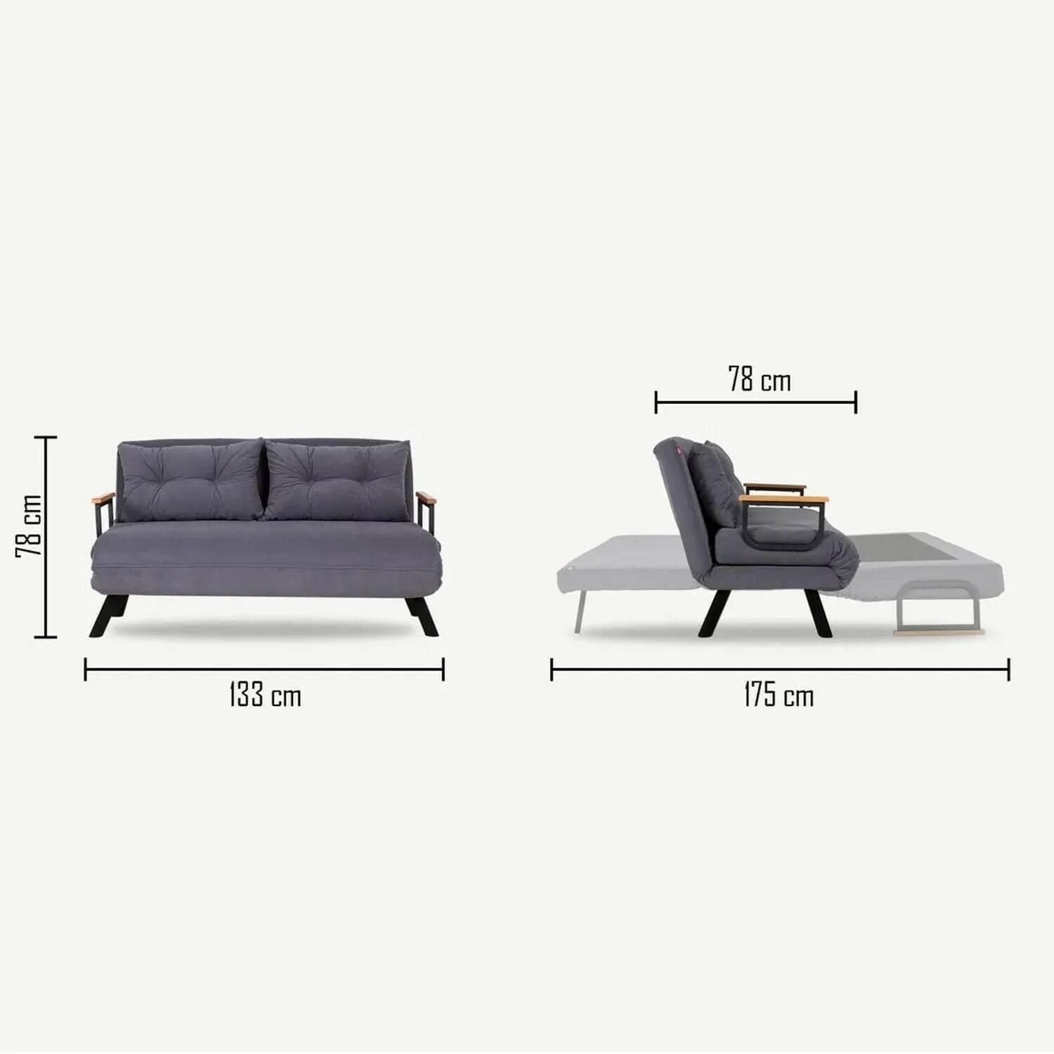 Canapé-lit à 2 places et oreillers et repose-pied noir tissu
