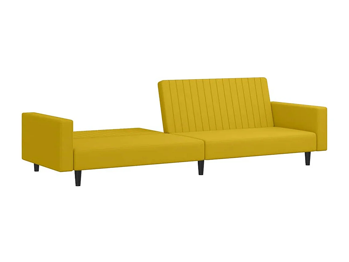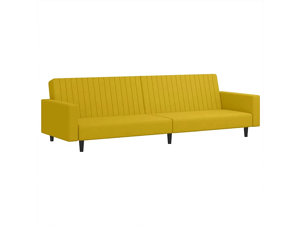 Canapé-lit à 2 places avec repose-pied jaune velours
