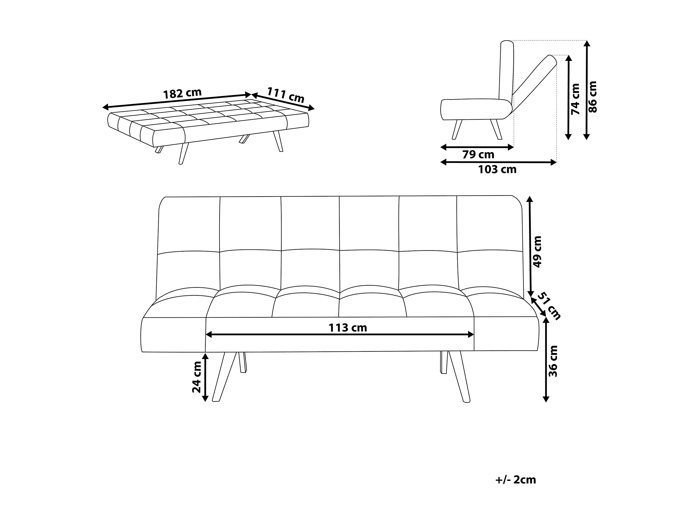 Canapé-lit INGARO Tissu Bleu marine 2 places