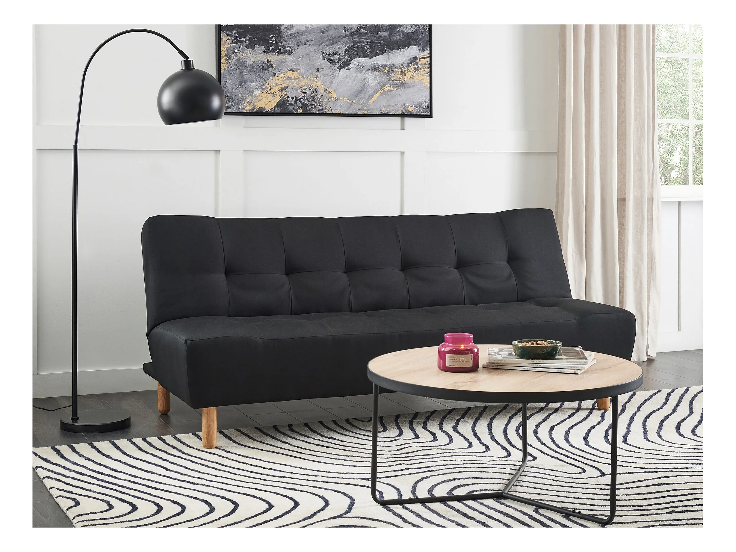Canapé-lit 3 places ALSTEN Tissu Noir