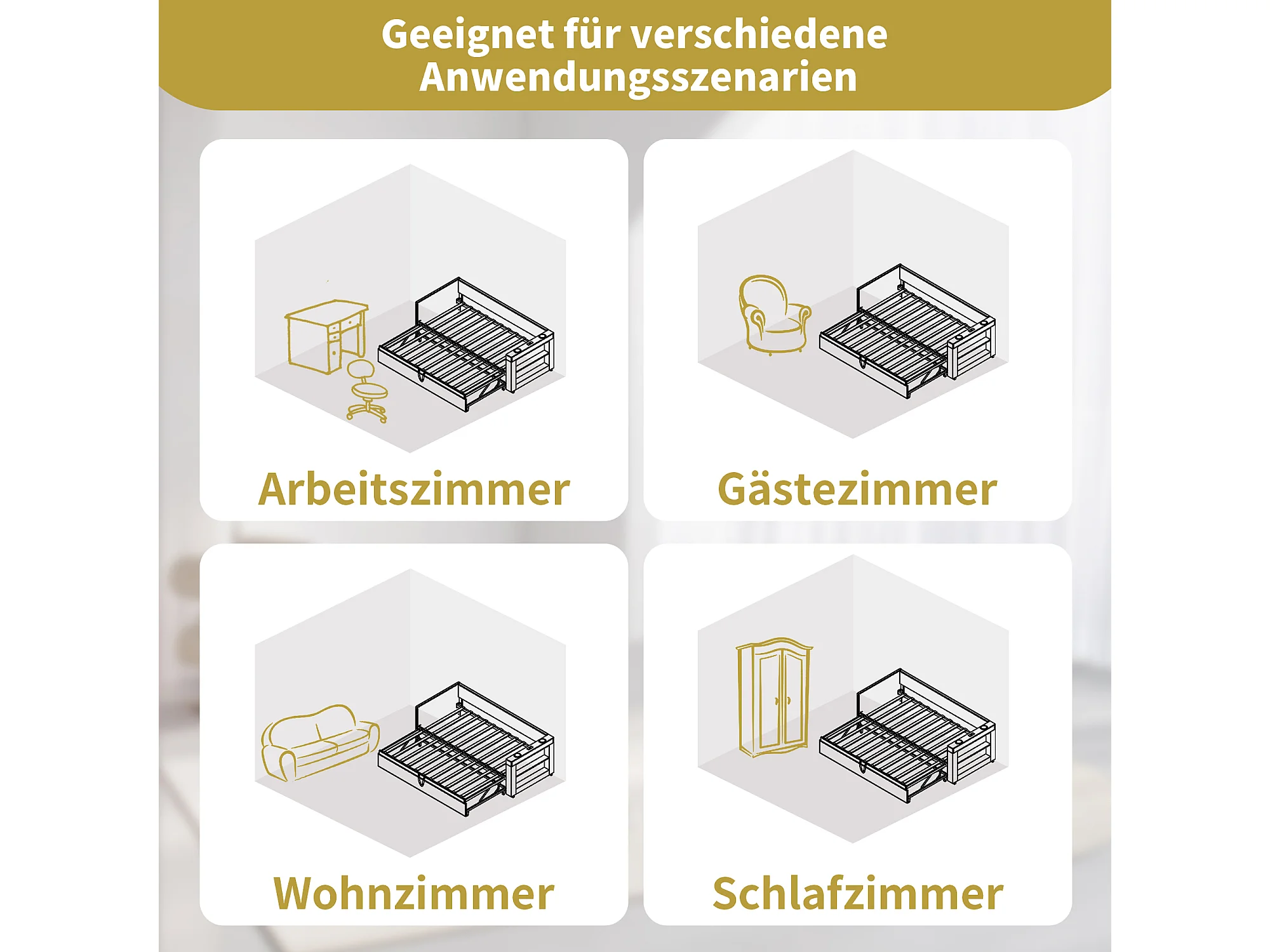 Canapé-lit gigogne en bois massif 90/180x190 cm - avec prise de charge - avec rangement - avec 2 tiroirs - sommier à lattes - gris(matelas non inclus)