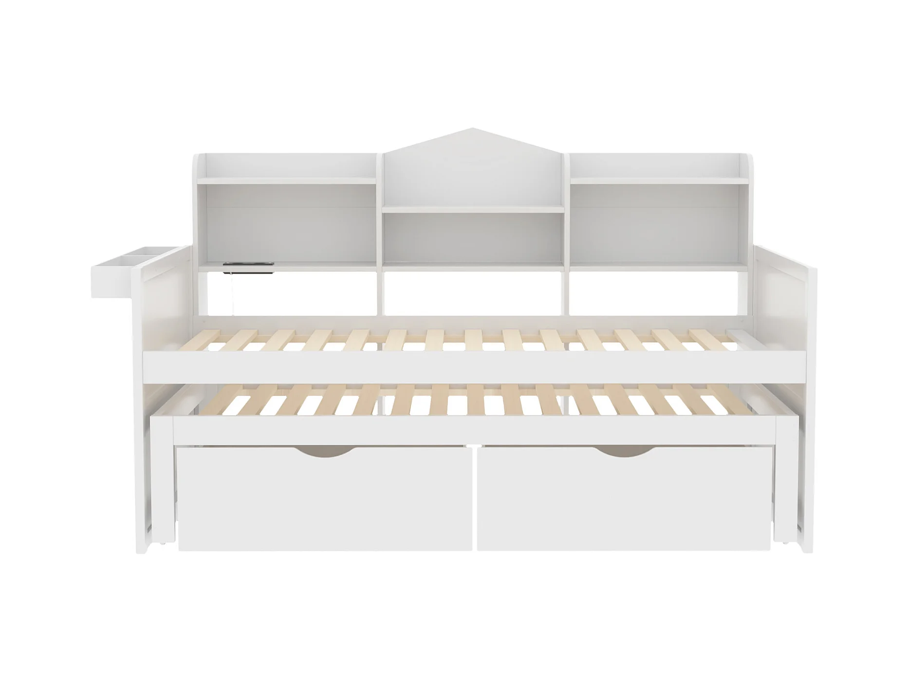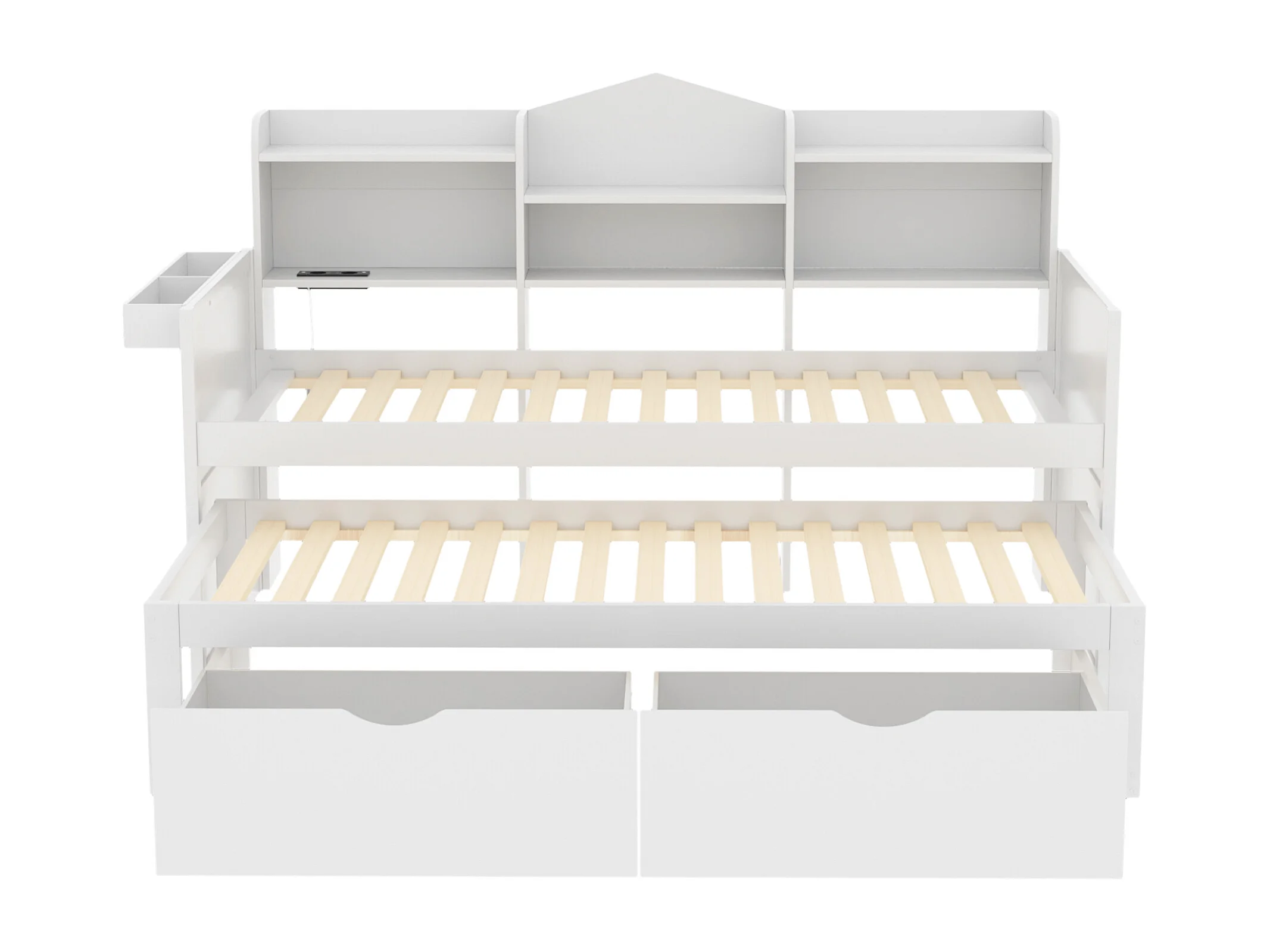 Lit de jour avec gigogne et tiroirs sans matelas blanc 90x190cm