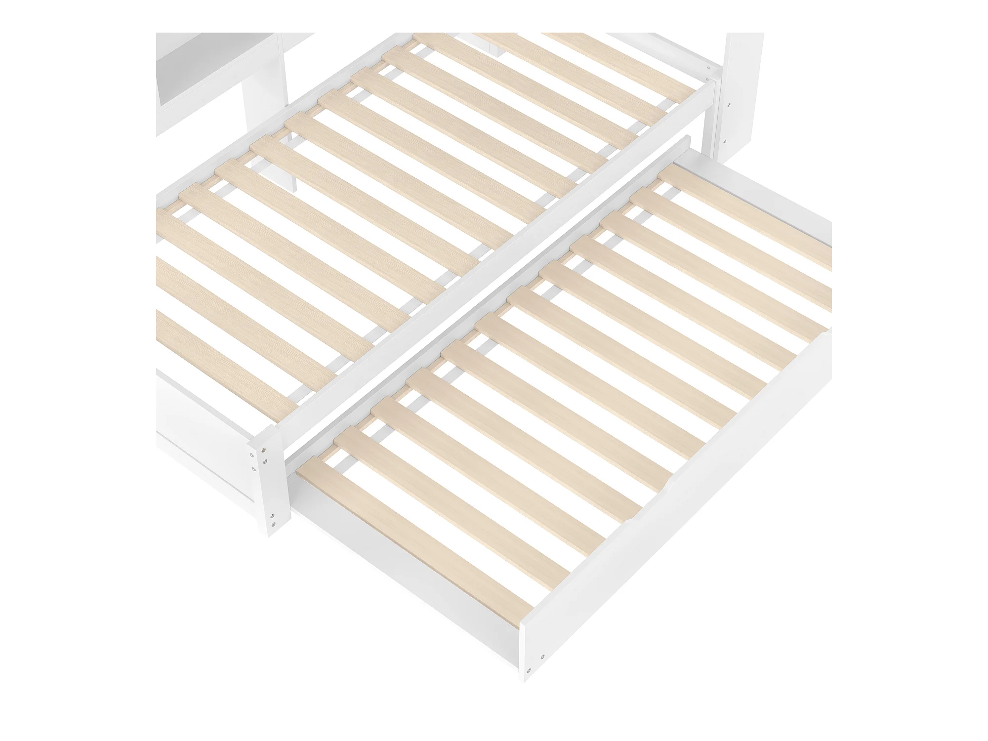 Lit banquette blanc 90x200cm et lit gigogne 90x190cm avec 2 tiroirs, rangements et prise USB, sans matelas