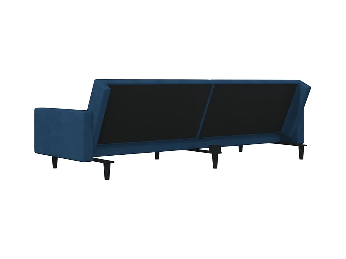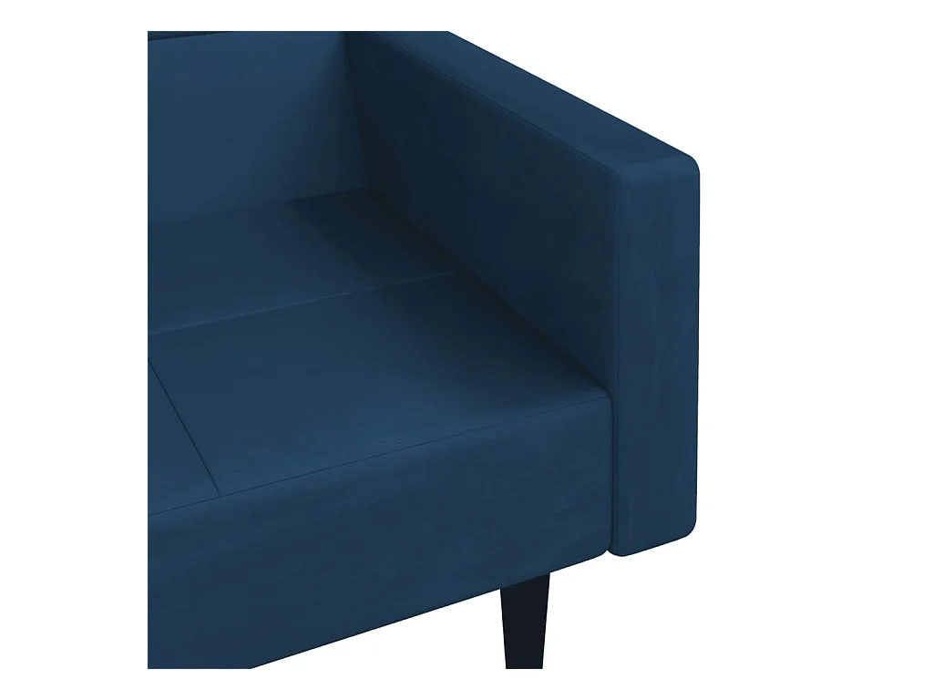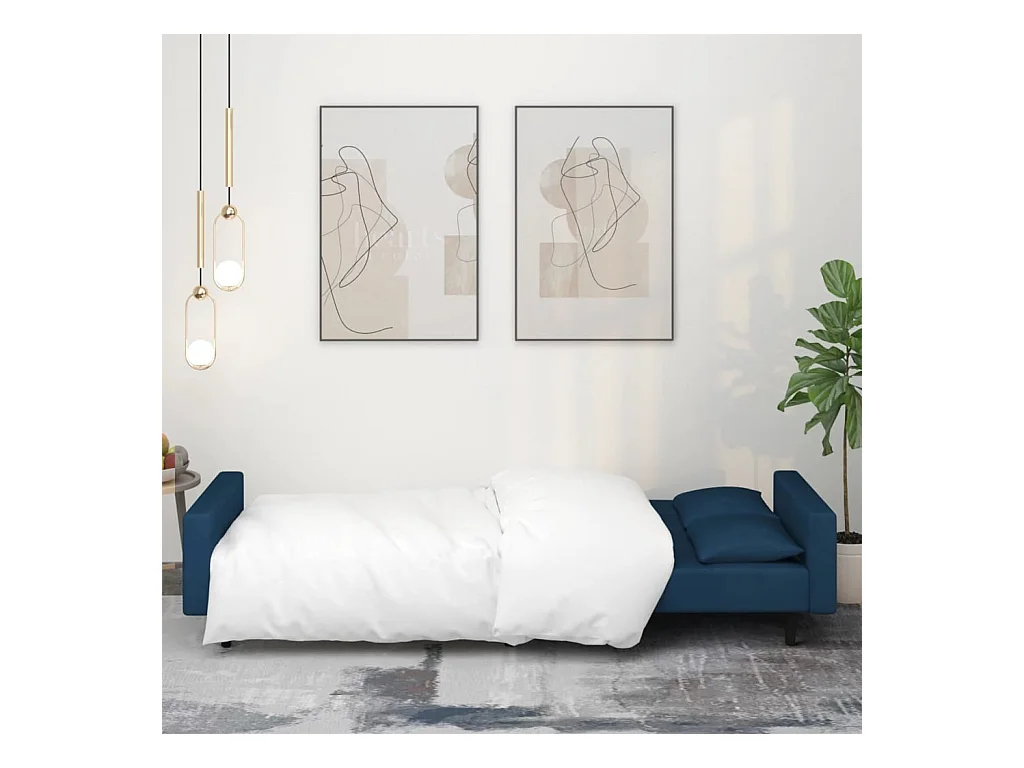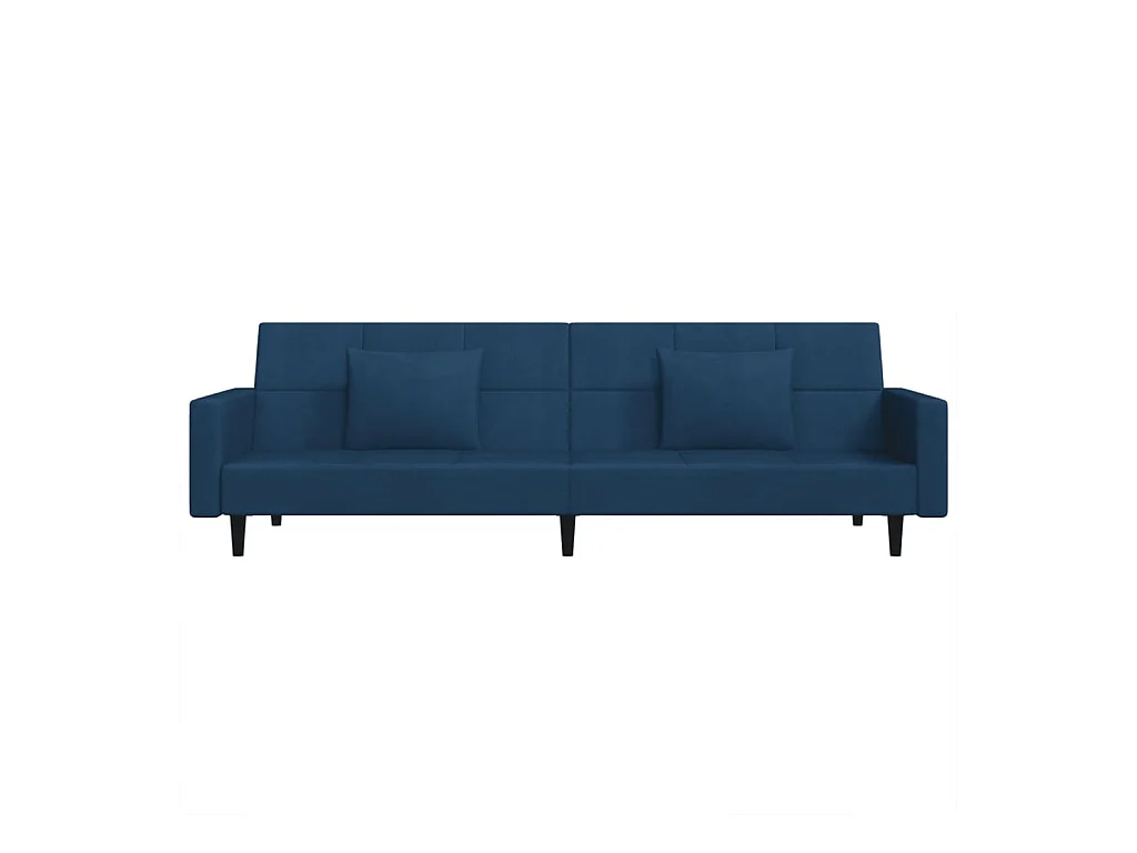 Canapé-lit à 2 places avec deux oreillers bleu velours