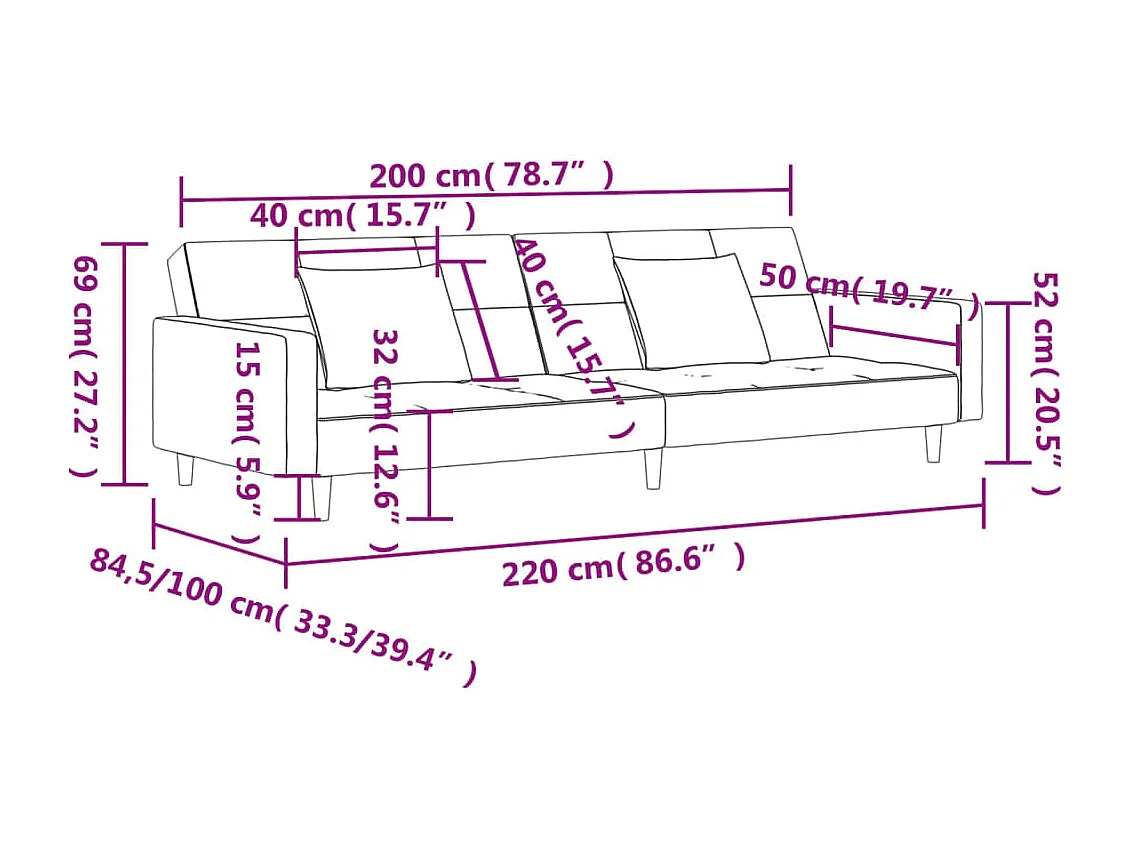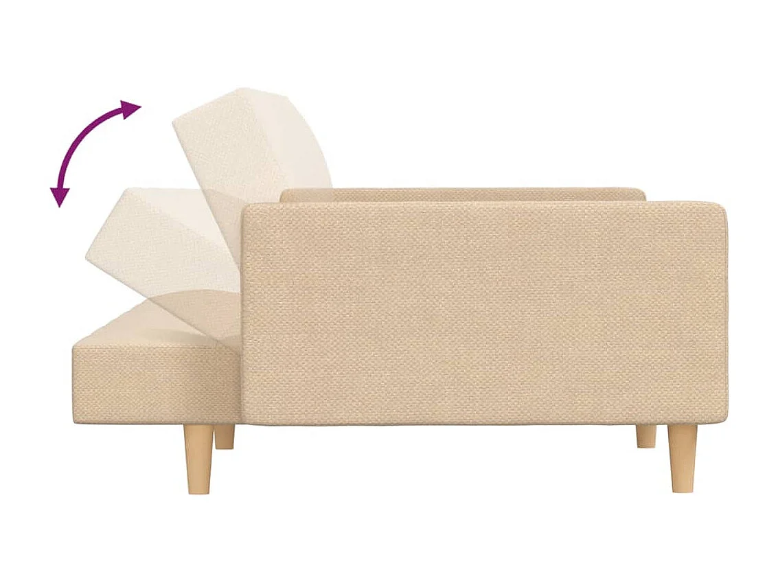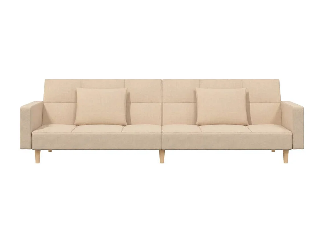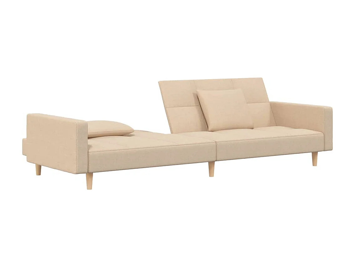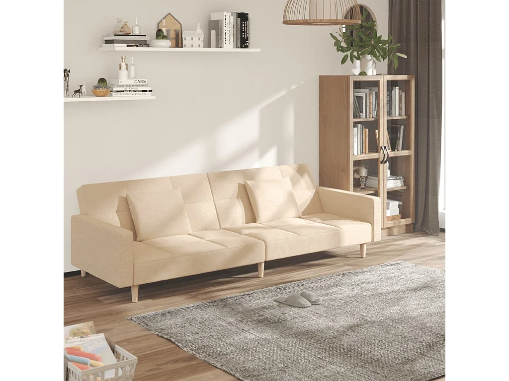 Canapé-lit à 2 places avec deux oreillers crème tissu