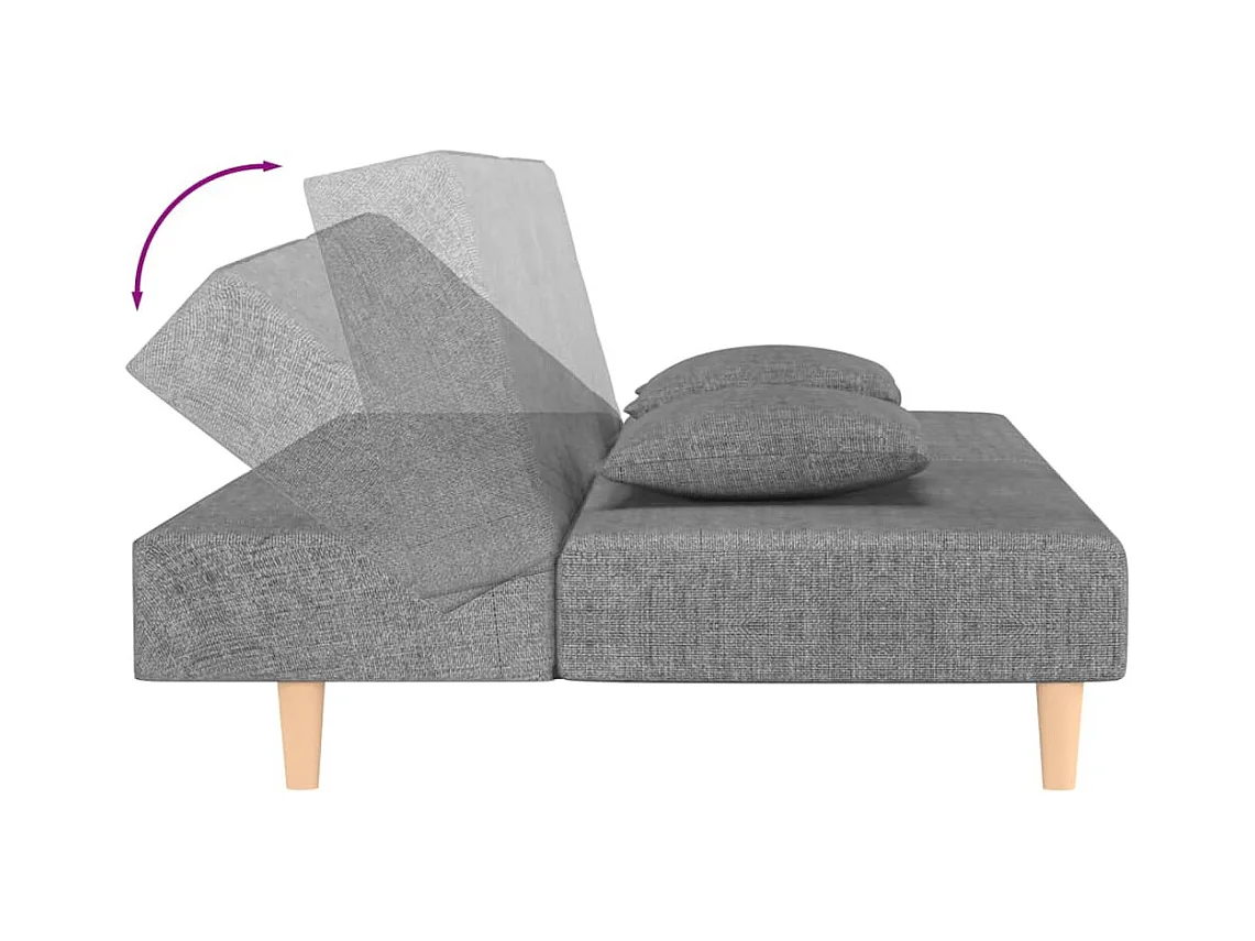 Canapé-lit à 2 places avec deux oreillers gris clair tissu