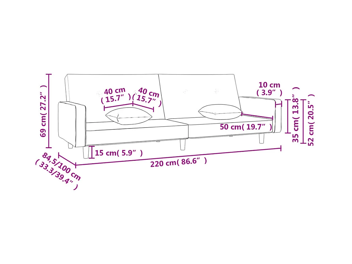 Canapé-lit à 2 places avec deux oreillers Gris clair Velours