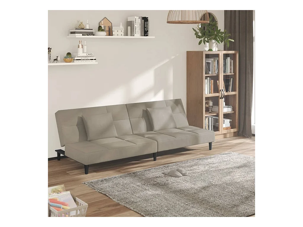 Canapé-lit à 2 places avec deux oreillers Gris clair Velours