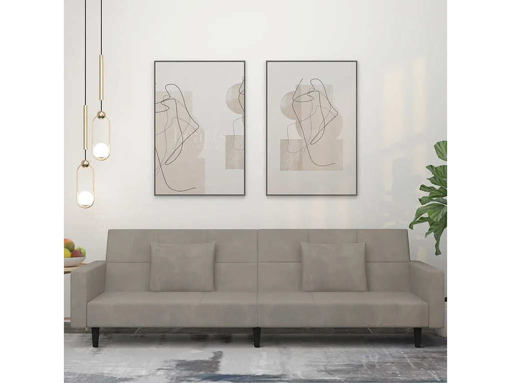 Canapé-lit à 2 places avec deux oreillers Gris clair Velours