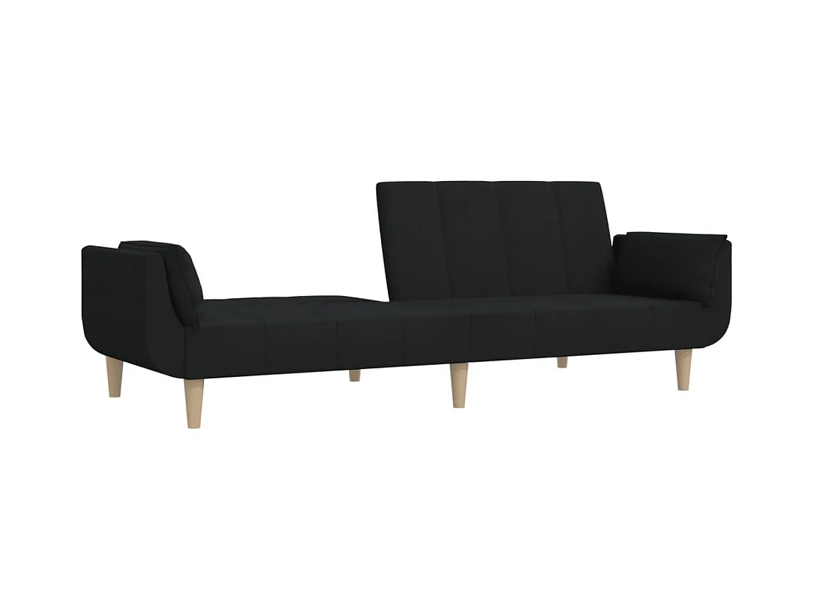 Canapé-lit à 2 places avec deux oreillers noir tissu