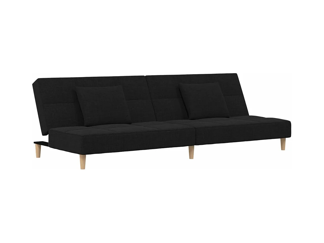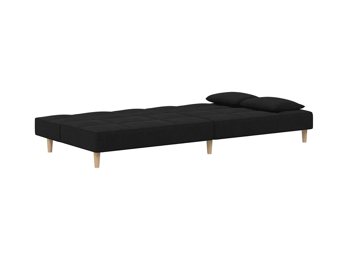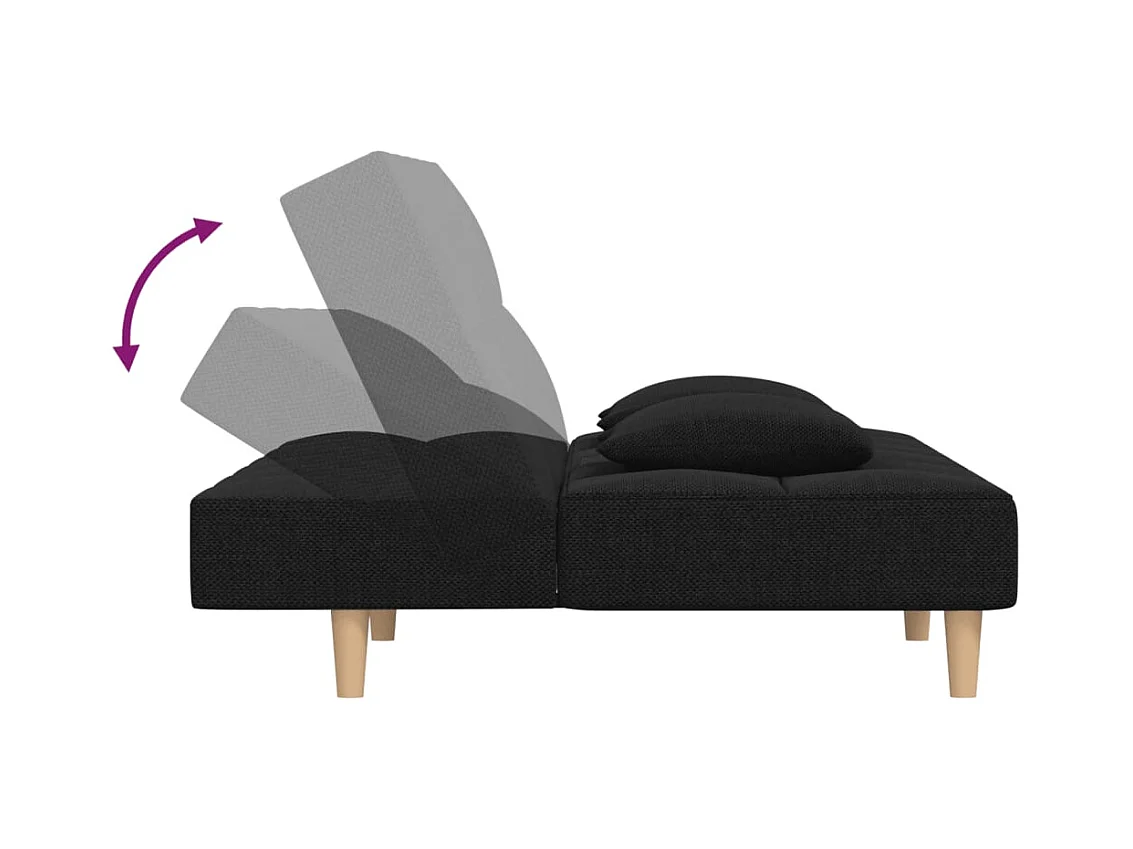 Canapé-lit à 2 places avec deux oreillers noir tissu
