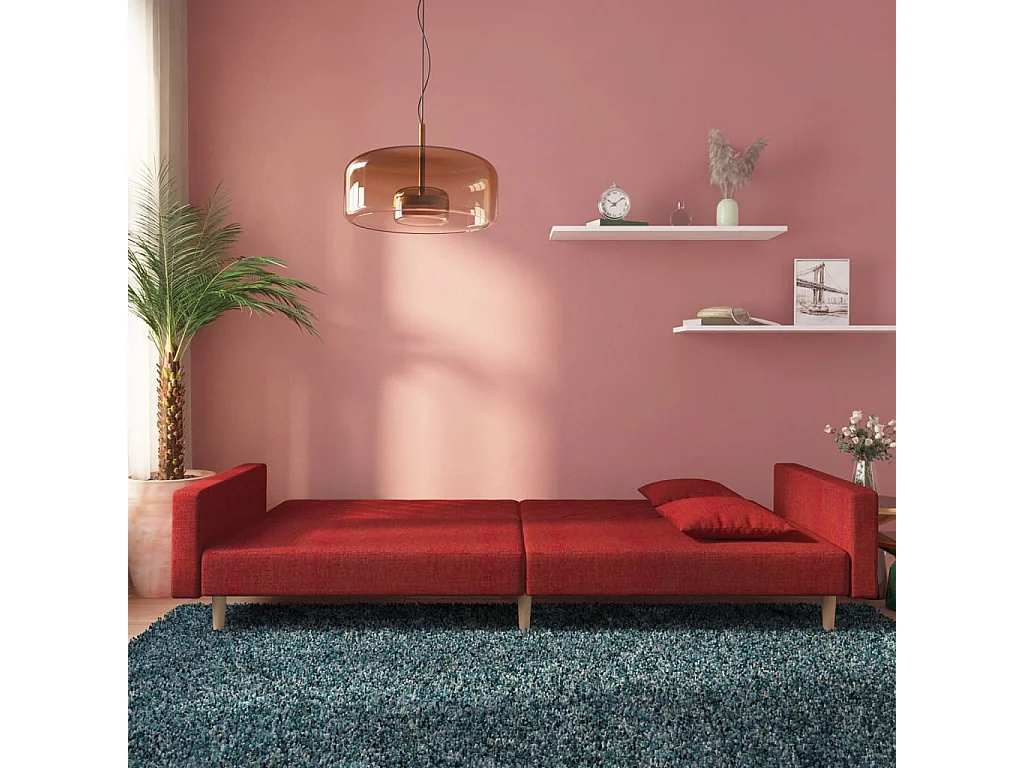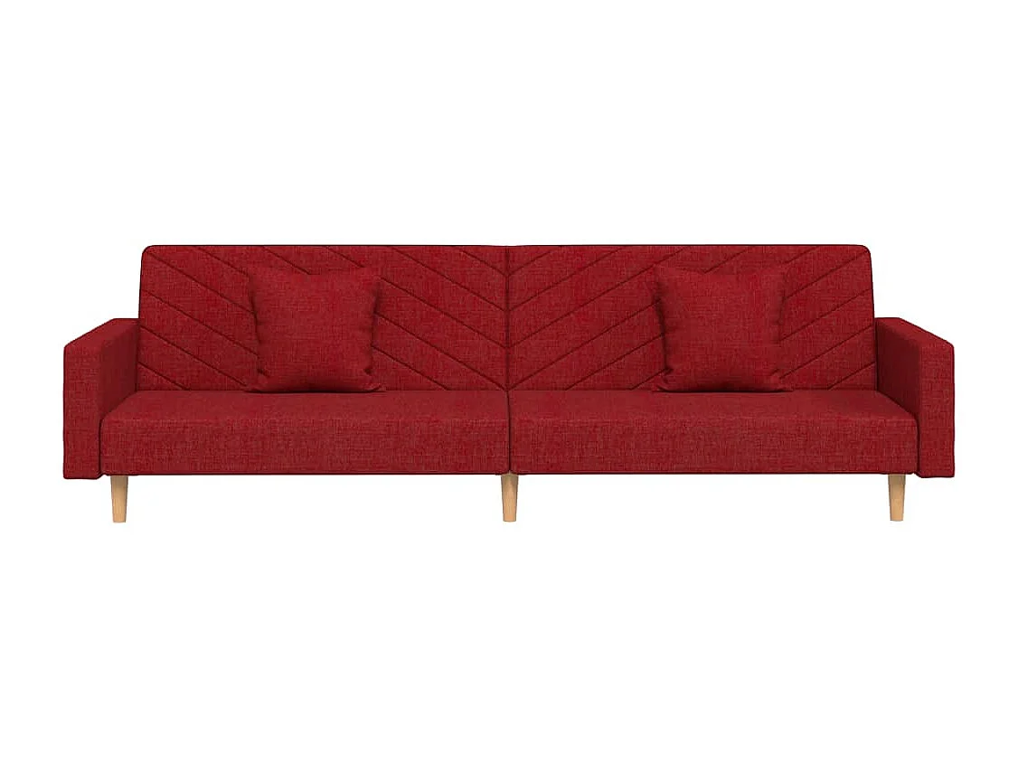 Canapé-lit à 2 places avec deux oreillers rouge bordeaux tissu