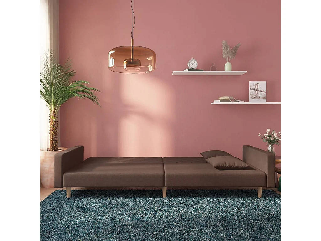 Canapé-lit à 2 places avec deux oreillers taupe tissu