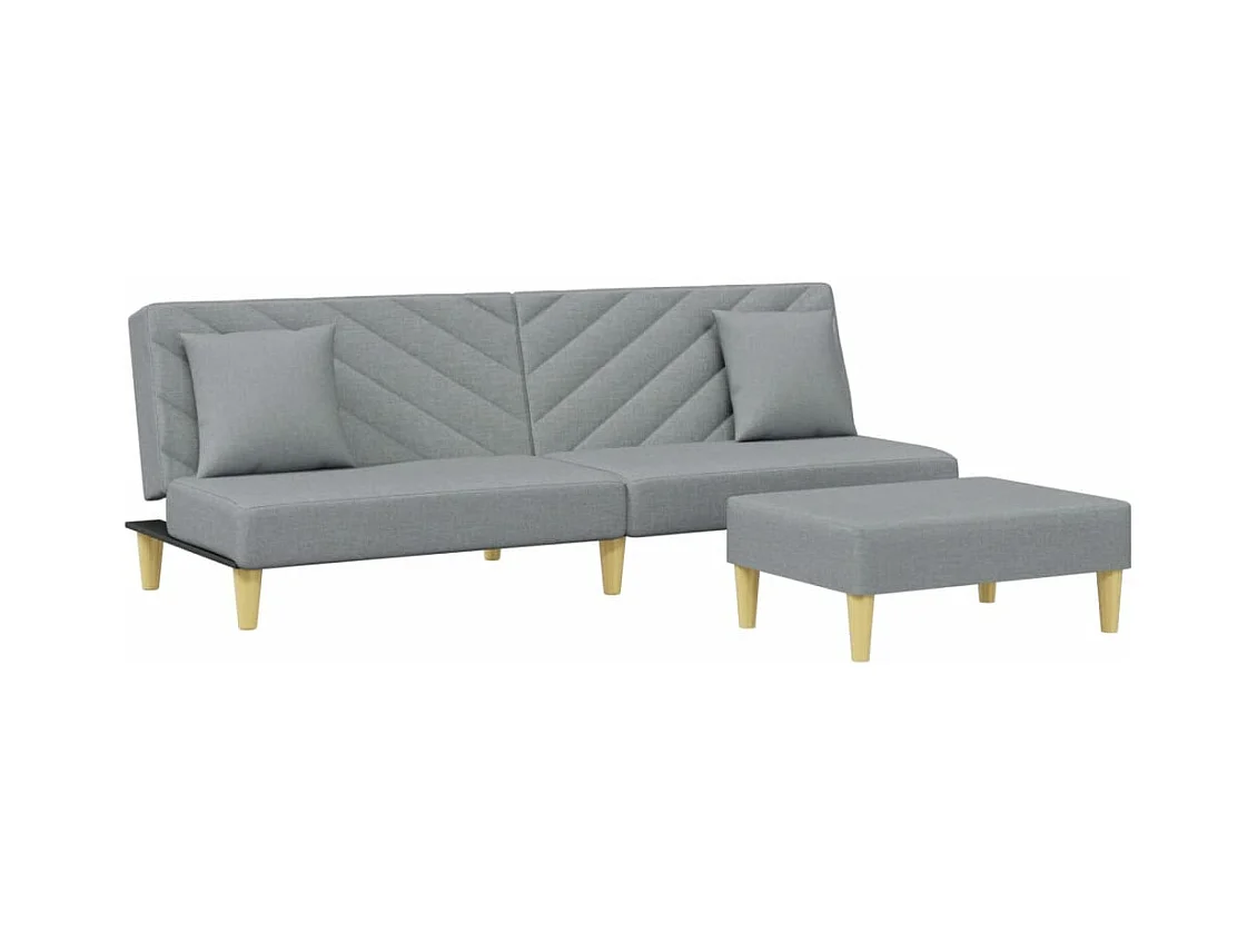 Canapé-lit à 2 places avec repose-pied gris clair tissu