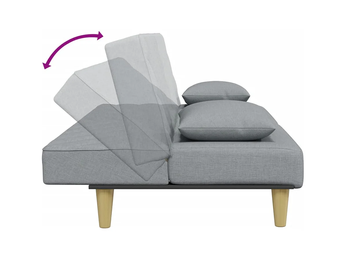 Canapé-lit à 2 places avec oreillers et repose-pied gris clair