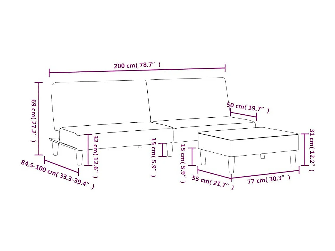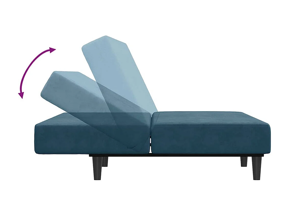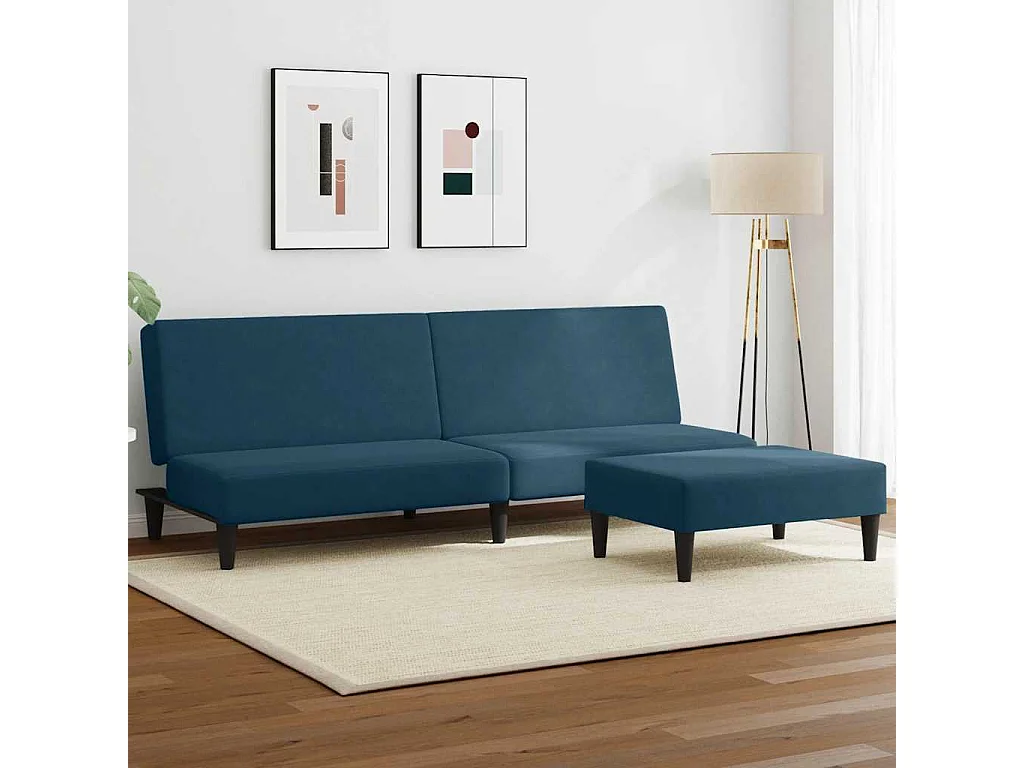Canapé-lit à 2 places avec repose-pied bleu velours