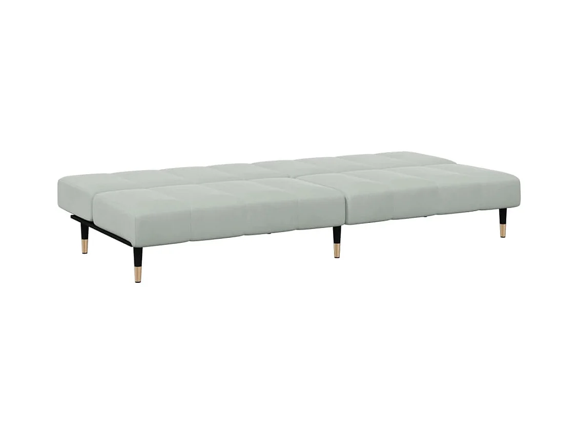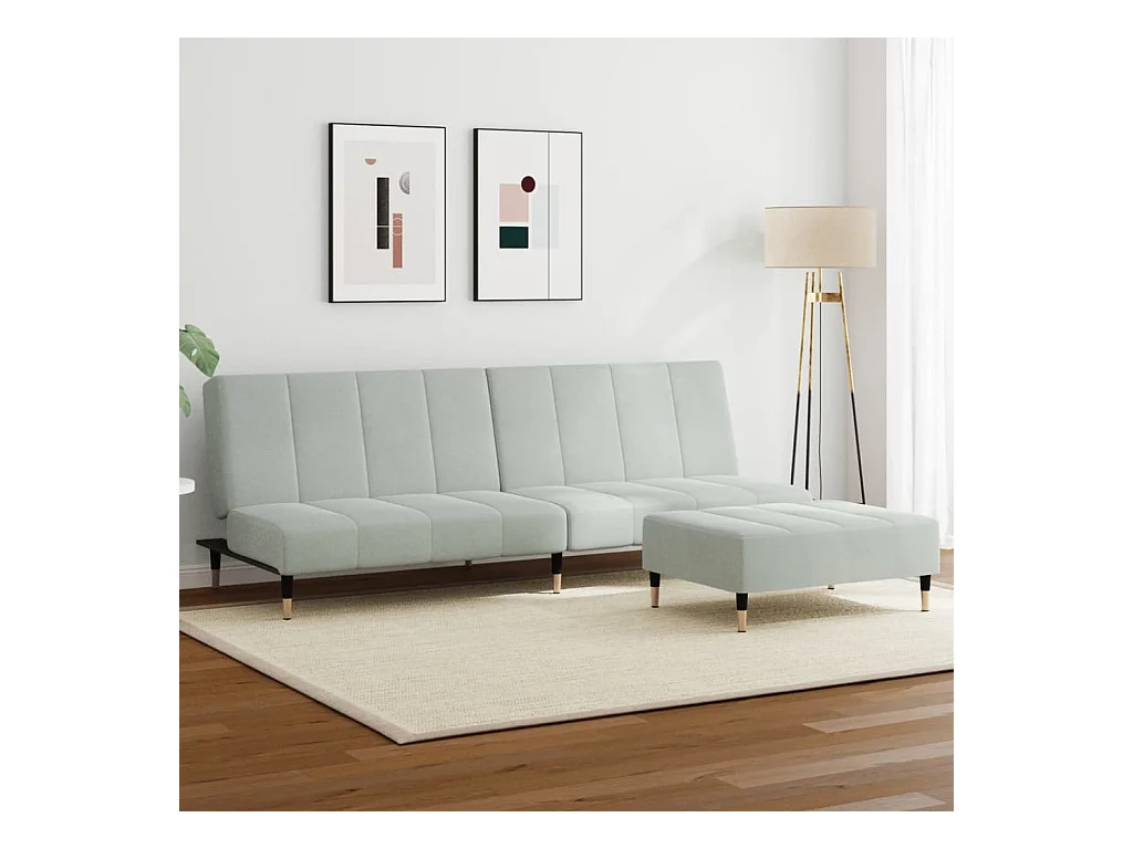 Canapé-lit à 2 places avec repose-pied gris clair velours