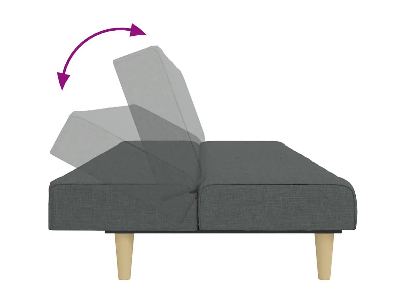 Canapé-lit à 2 places avec repose-pied gris foncé tissu
