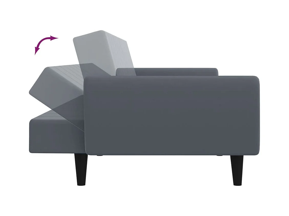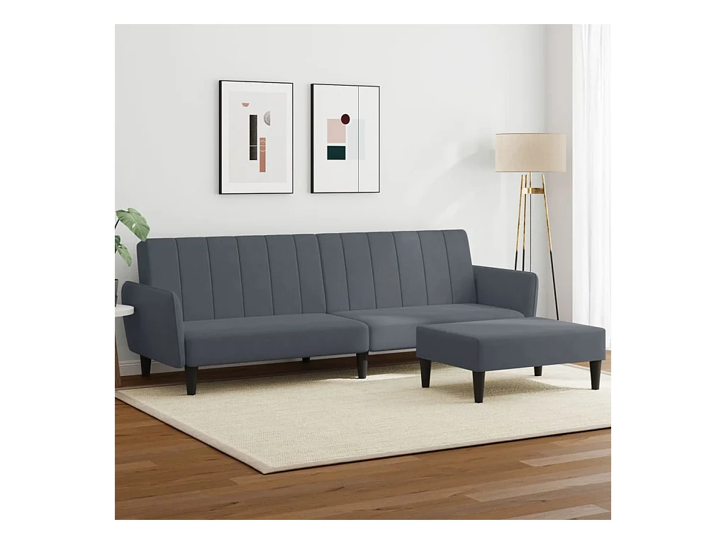 Canapé-lit à 2 places avec repose-pied gris foncé velours