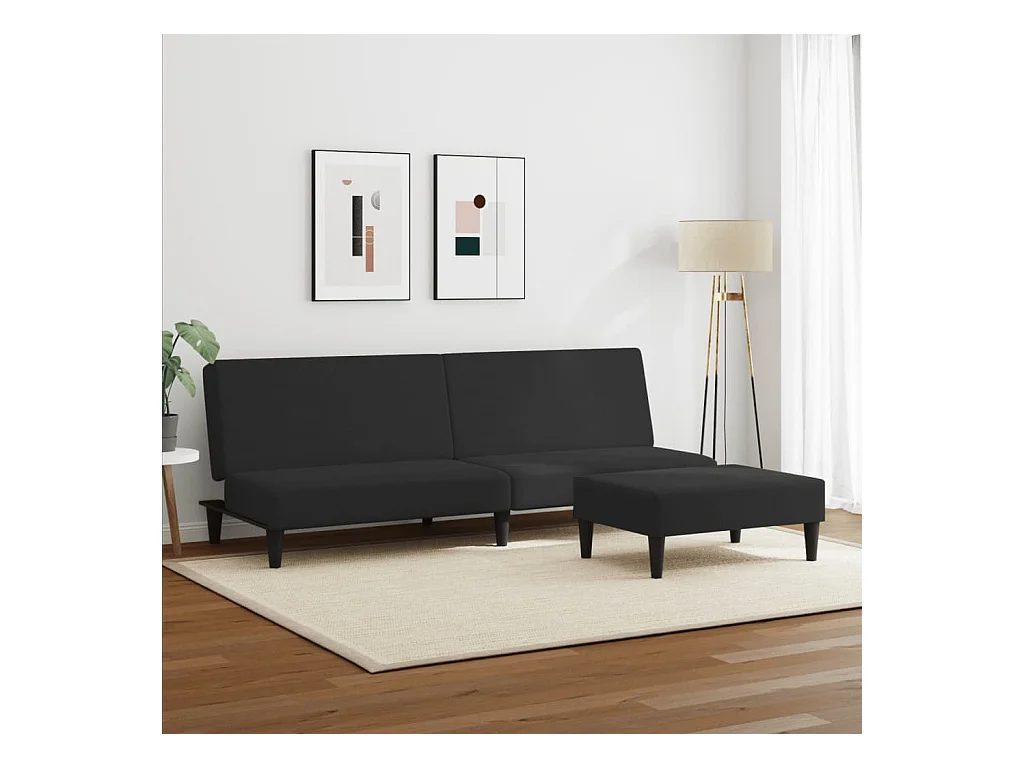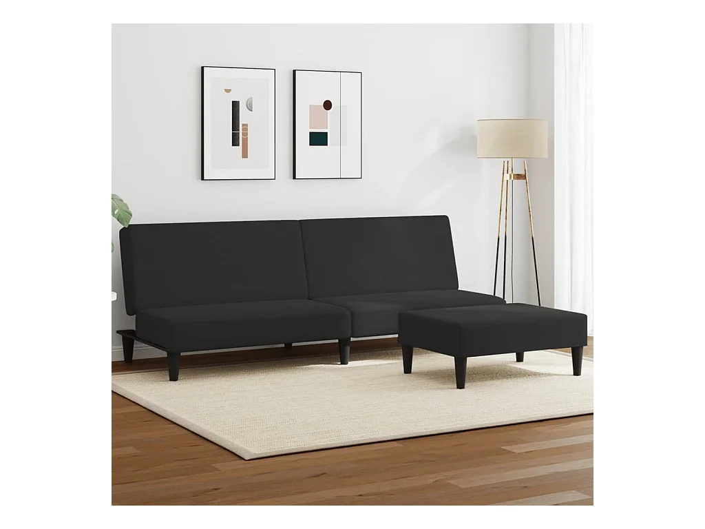 Canapé-lit à 2 places et oreillers et repose-pied noir velours