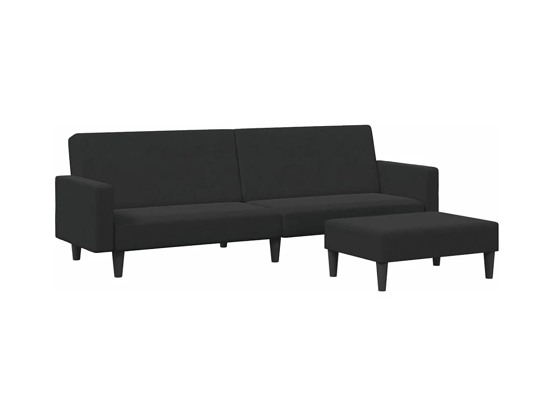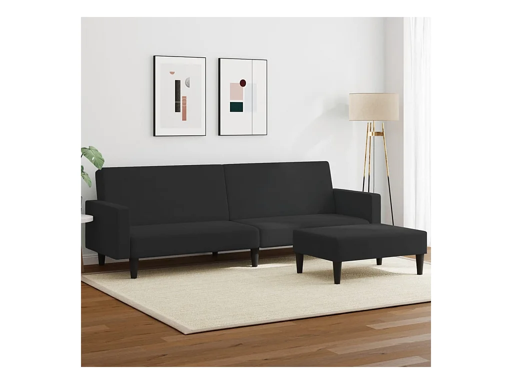 Canapé-lit à 2 places et oreillers et repose-pied noir velours