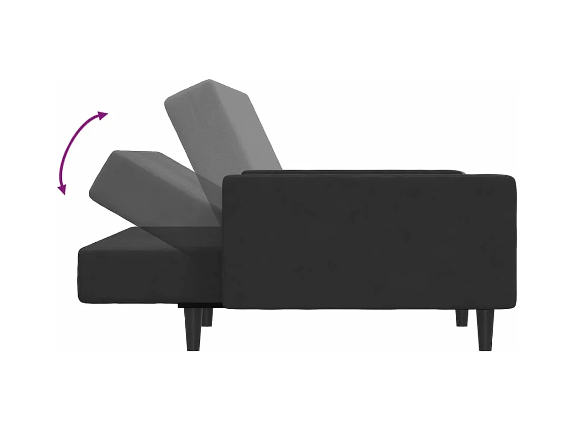 Canapé-lit à 2 places avec deux oreillers Noir Velours