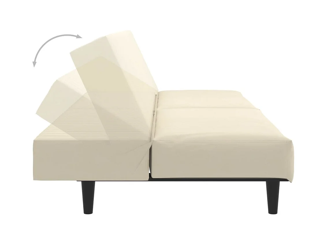 Canapé-lit à 2 places avec deux oreillers crème velours