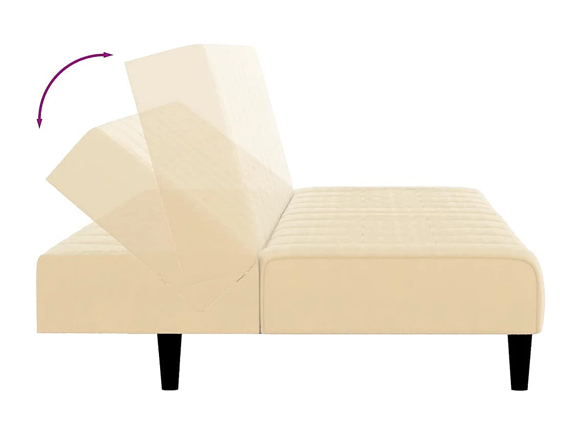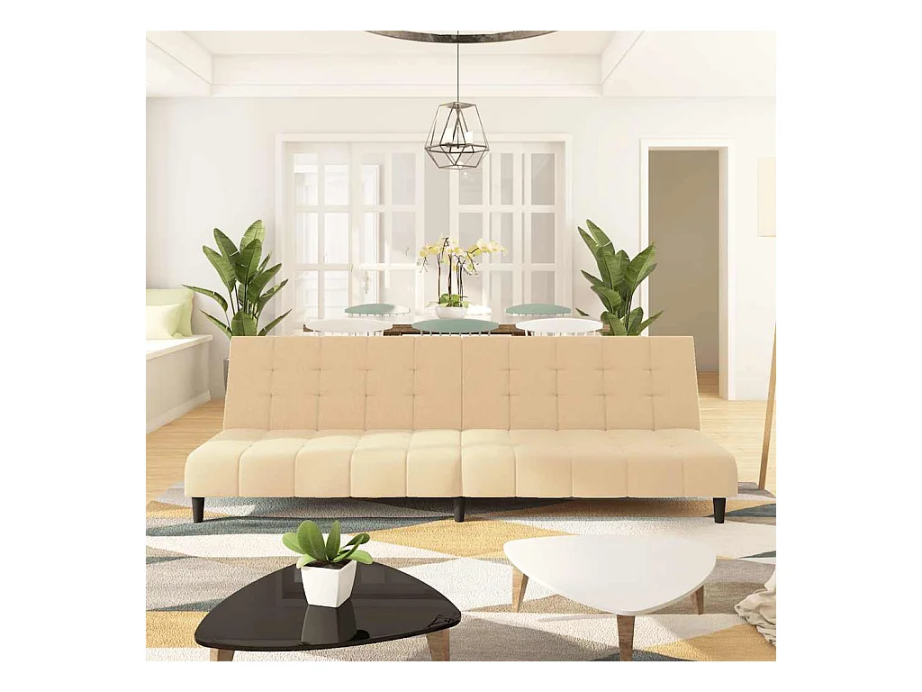 Canapé-lit à 2 places avec deux oreillers crème tissu