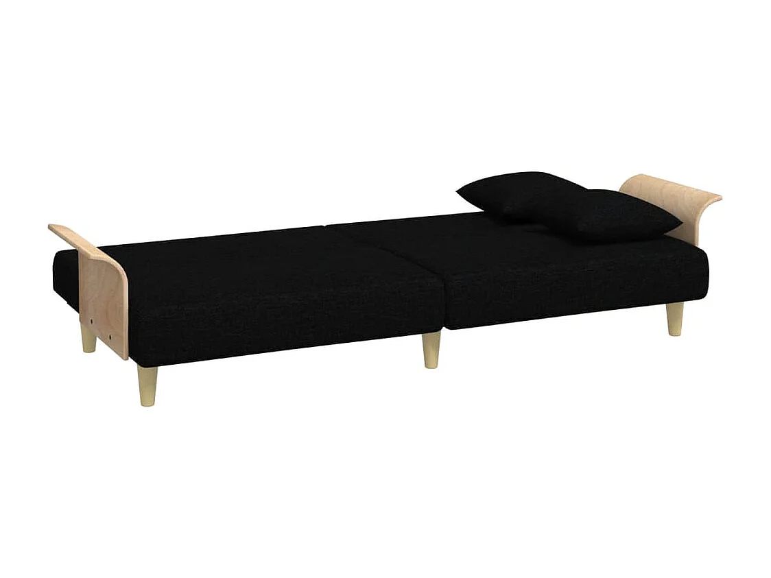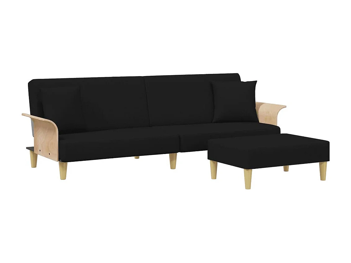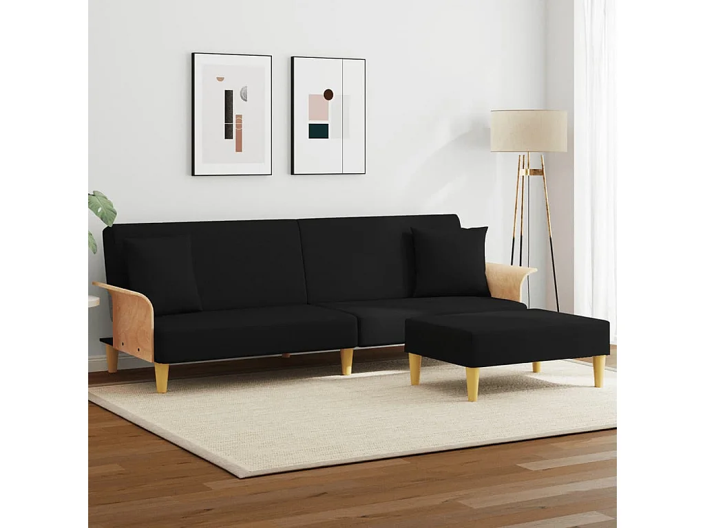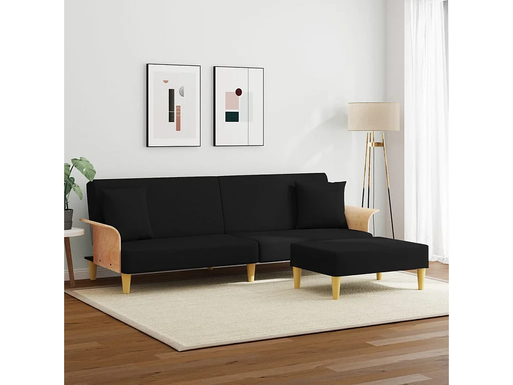 Canapé-lit à 2 places et oreillers et repose-pied noir velours