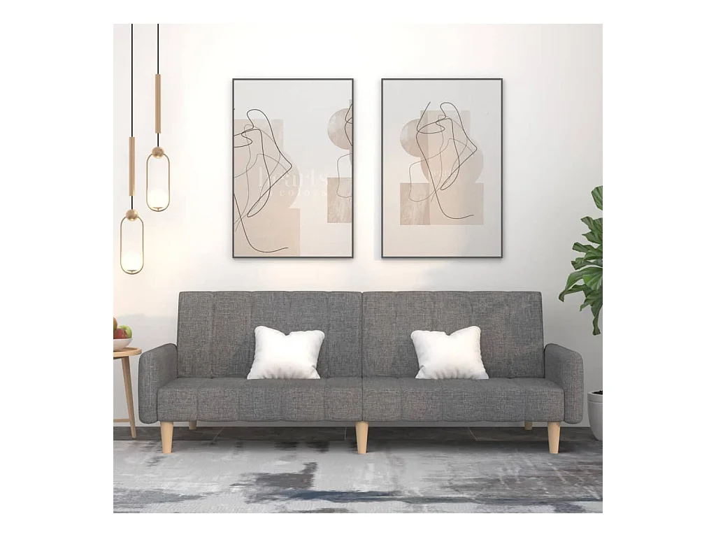 Canapé-lit à 2 places avec deux oreillers gris clair tissu