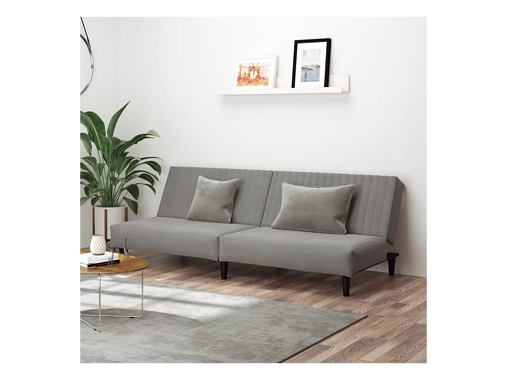 Canapé-lit à 2 places avec deux oreillers Gris clair Velours