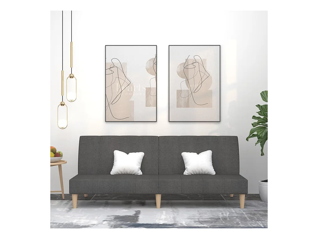 Canapé-lit à 2 places avec deux oreillers Gris foncé Tissu