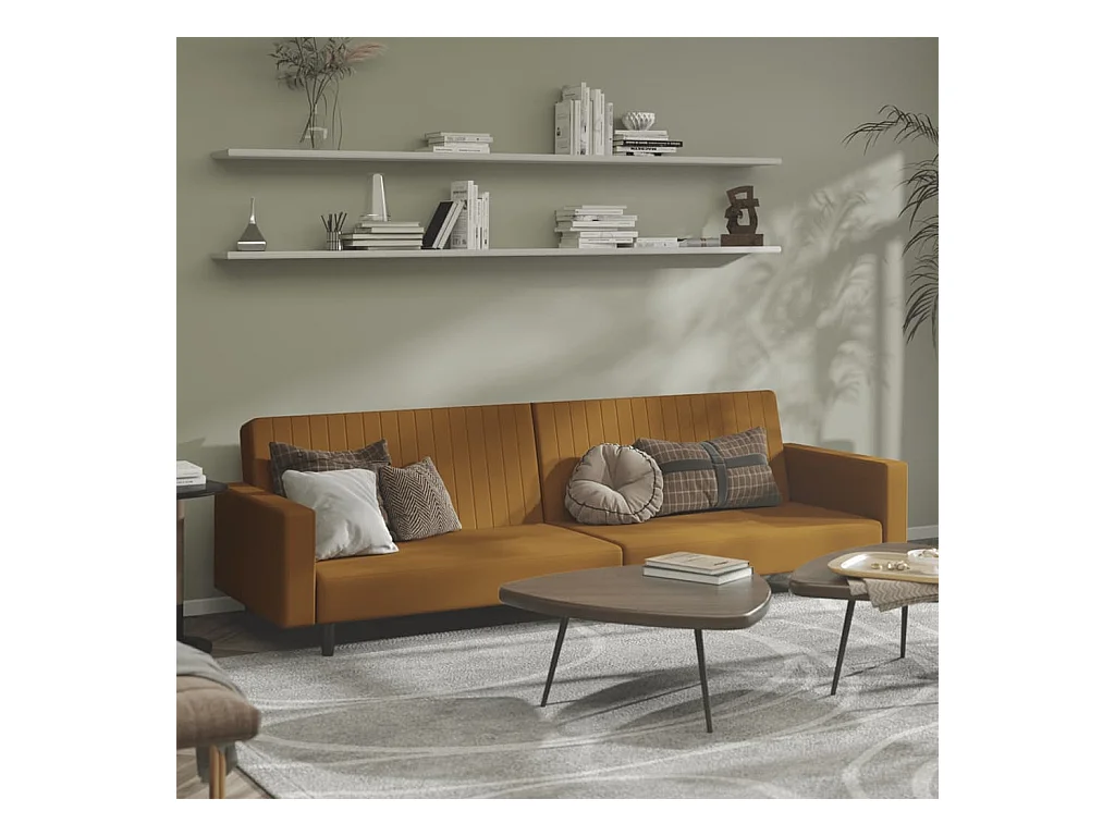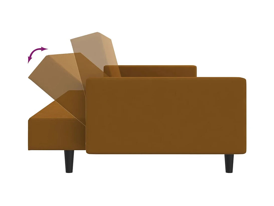 Canapé 2 places convertible en velours marron avec dossier inclinable - design moderne